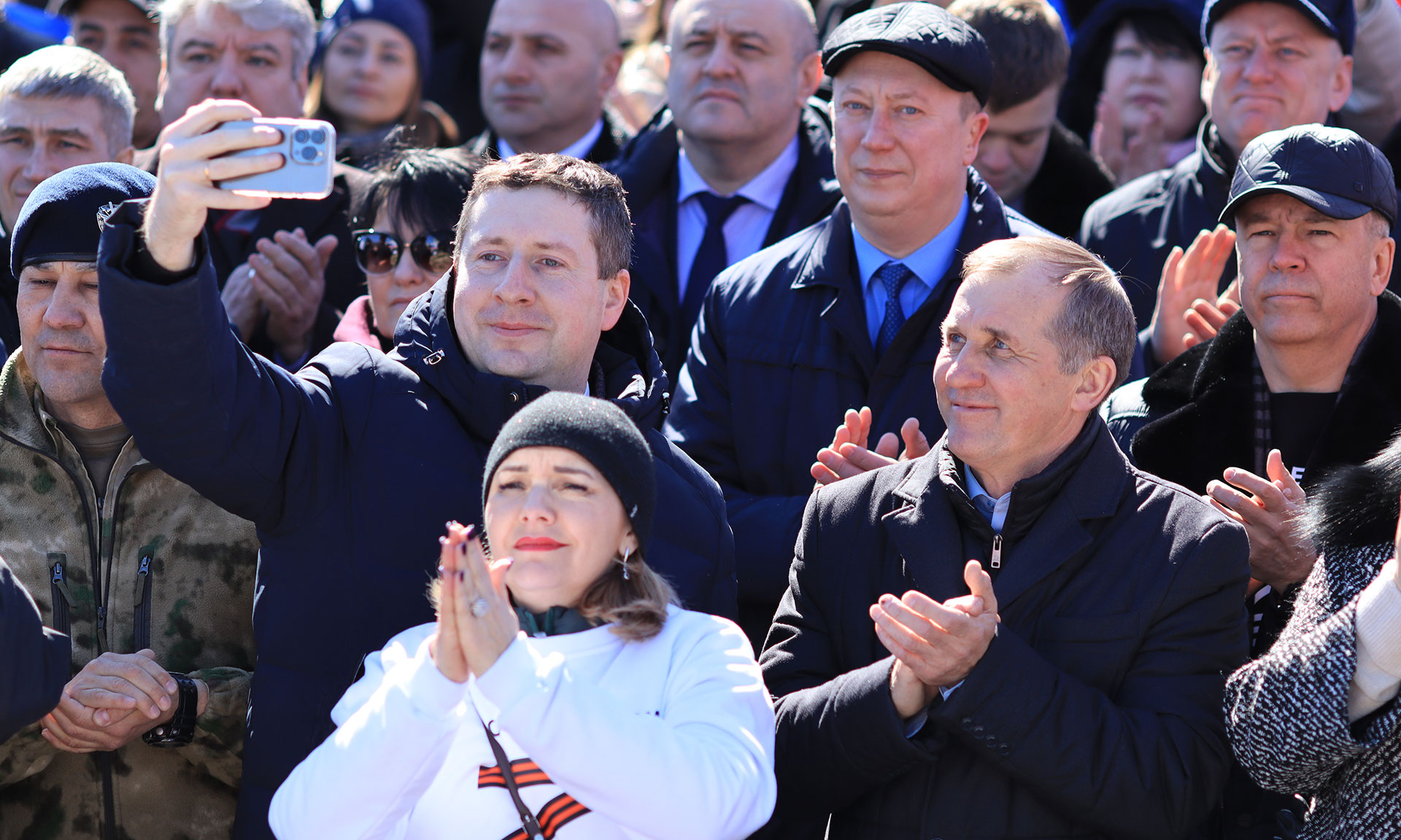 — Сегодня мы празднуем восьмую годовщину со дня воссоединения Крыма с Россией. Это пример национального единства, так называемая «Крымская весна», это пример для всех нас, ведь Россия, это общие корни, общие победы, общая наша история. Сегодня мы все собрались здесь в поддержку решения Президента нашей страны о начале специальной военной операции на Украине, а также о поддержке жителей Донбасса, которые стали свободными и независимыми. Хотелось бы сказать слова благодарности и пожелать нам всем новых достижений и успехов на благо нашей великой страны — России! За мир! За Родину! За Путина! Ура!