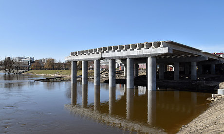 На строительстве моста ежедневно работают около 60 человек. В настоящее время из 12 ростверков выполнены уже 9, из 12 ригелей также готовы 9. Из 198 балок уложены 126. Чтобы полностью закрыть верхнюю часть моста, осталось выполнить 4 пролетных строения. Строители рассказали, что паводок сдерживает возведение русловых опор, поэтому пока работы сосредоточены на омоноличивании межбалочных швов, изготовлении подпорных стен, а также обустройстве подходов к мосту. Подход к мосту со стороны новой дороги уже выполнен в щебне, на следующей неделе здесь начнут укладывать основание из тощего бетона.