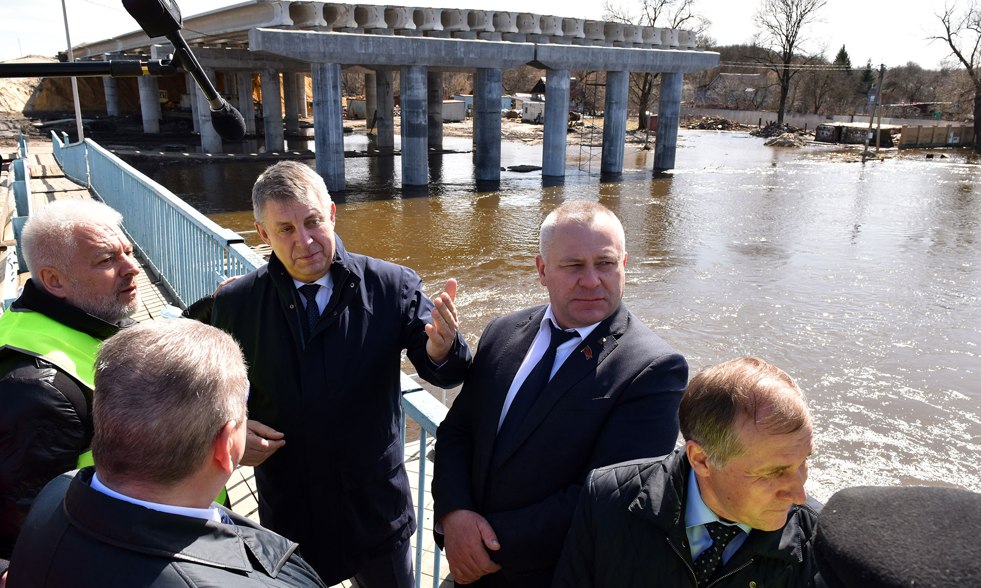 Губернатор Александр Богомаз оценил ход работ по строительству моста через Десну — второго этапа реализации масштабного проекта «Строительство автомобильной дороги-защитной дамбы Брянск-I-Брянск-II.