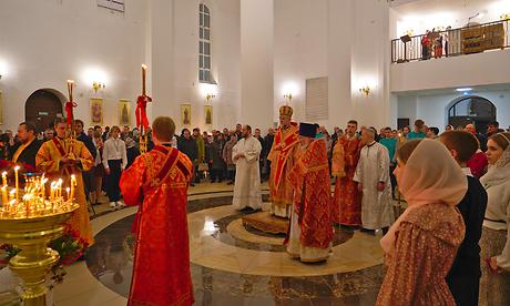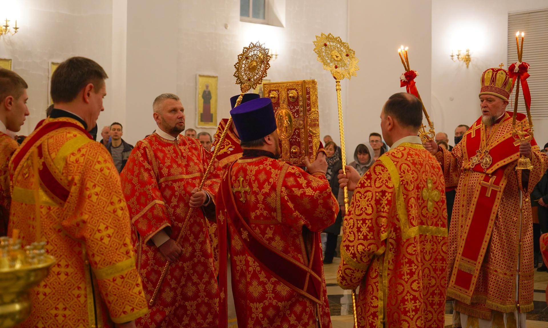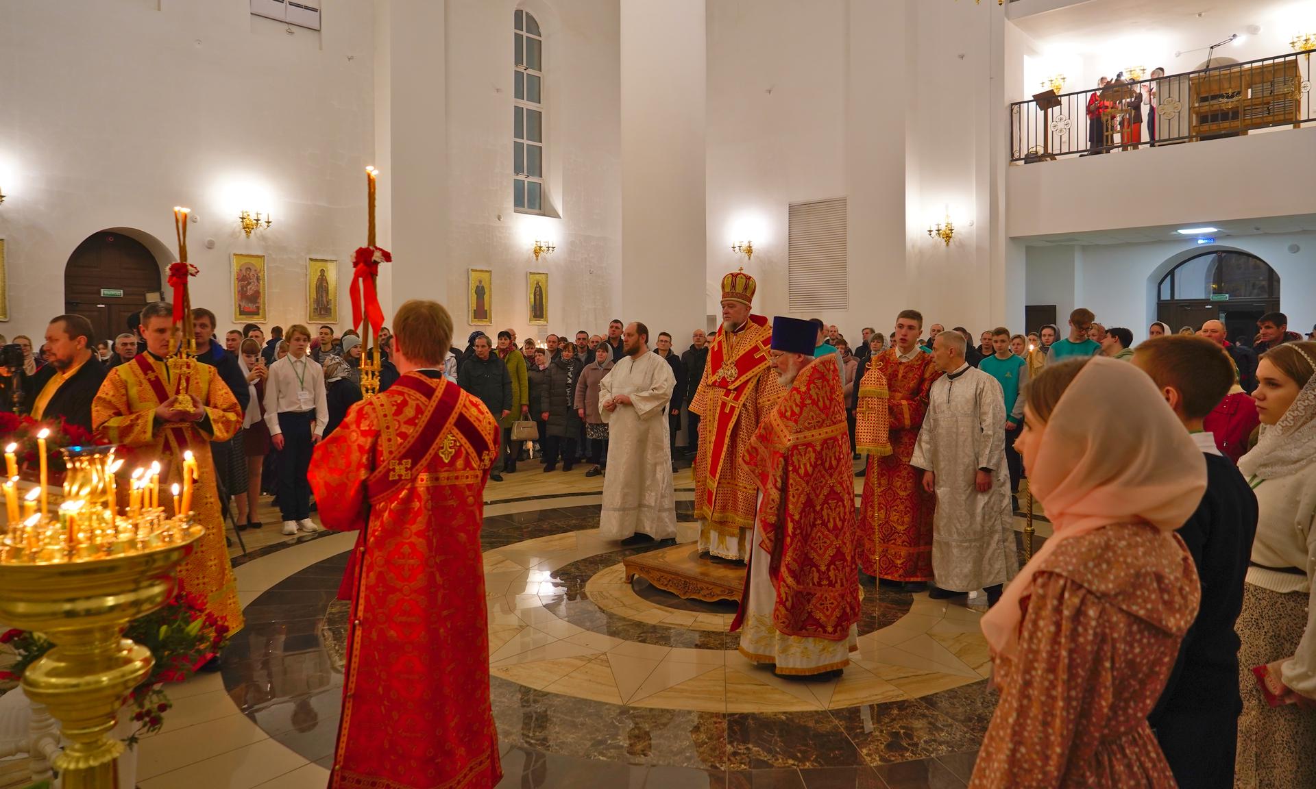 Епископ Владимир совершил Пасхальные Богослужения — полунощницу, Крестный ход, пасхальную заутреню и Литургию святителя Иоанна Златоуста. В полночь под пение стихиры «Воскресение Твое, Христе Спасе, Ангели поют на Небесех, и нас на земли сподоби чистым сердцем Тебе славити» был совершен крестный ход вокруг кафедрального собора. За Пасхальной заутреней Владыка Владимир прочитал Слово огласительное святителя Иоанна Златоуста на Святую Пасху.