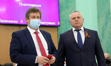 Затем Валентин Суббот вручил удостоверения и нагрудные знаки за особые заслуги работникам спортивных учреждений и сферы жилищно-коммунального хозяйства, которым были присвоены почетные звания.