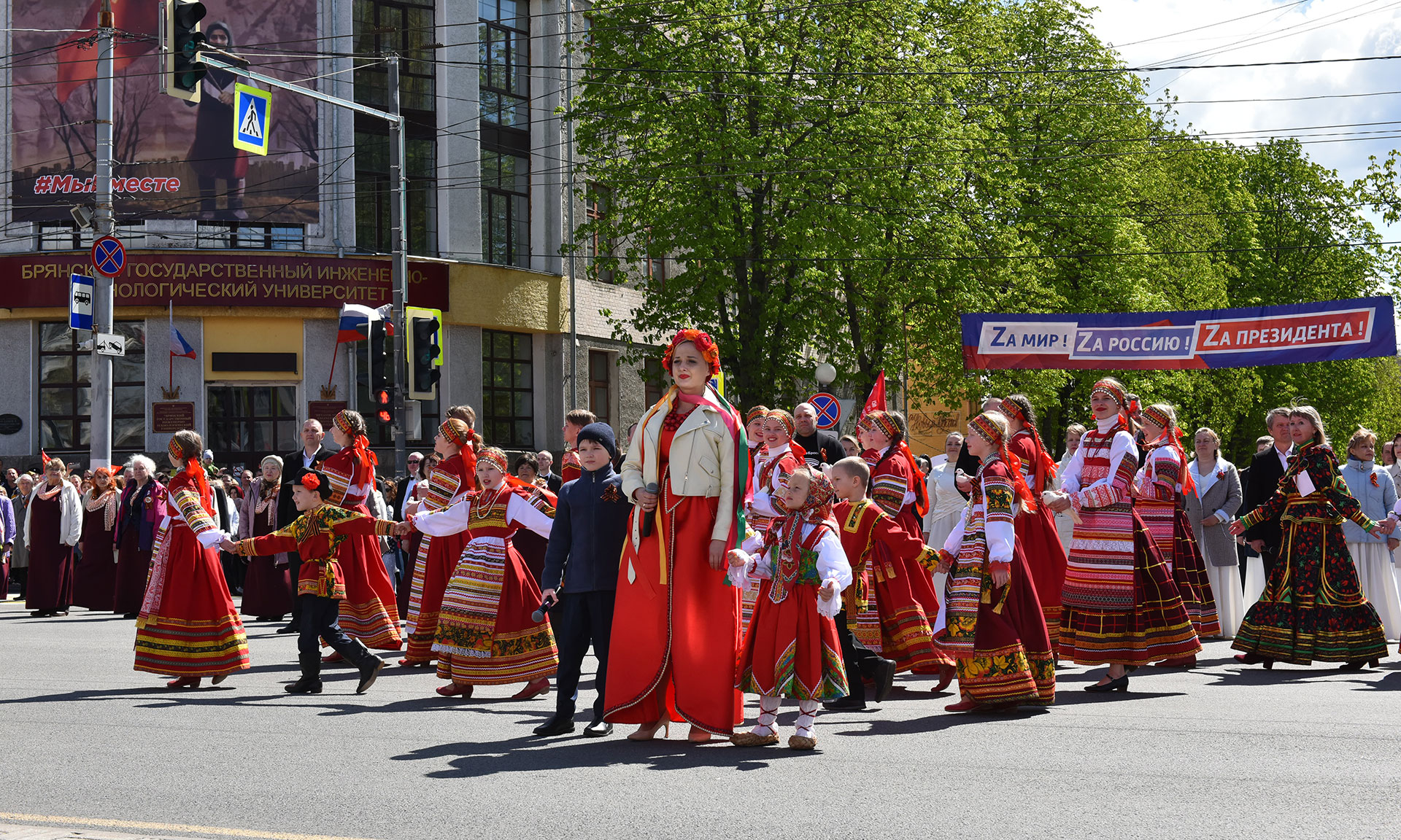 Площадь Ленина заполнили молодежные творческие коллективы и исполнили хореографическую композицию «Юность моя», которая завершилась стихотворением «Дед, это я виноват» в исполнении артиста Брянского областного театра драмы Дмитрия Ненахова. В исполнении сводного хора прозвучала песня «Хотят ли русские войны». В финале Максим Дегтерев и ансамбль «Ватага» исполнили песню «Россию строят мужики».