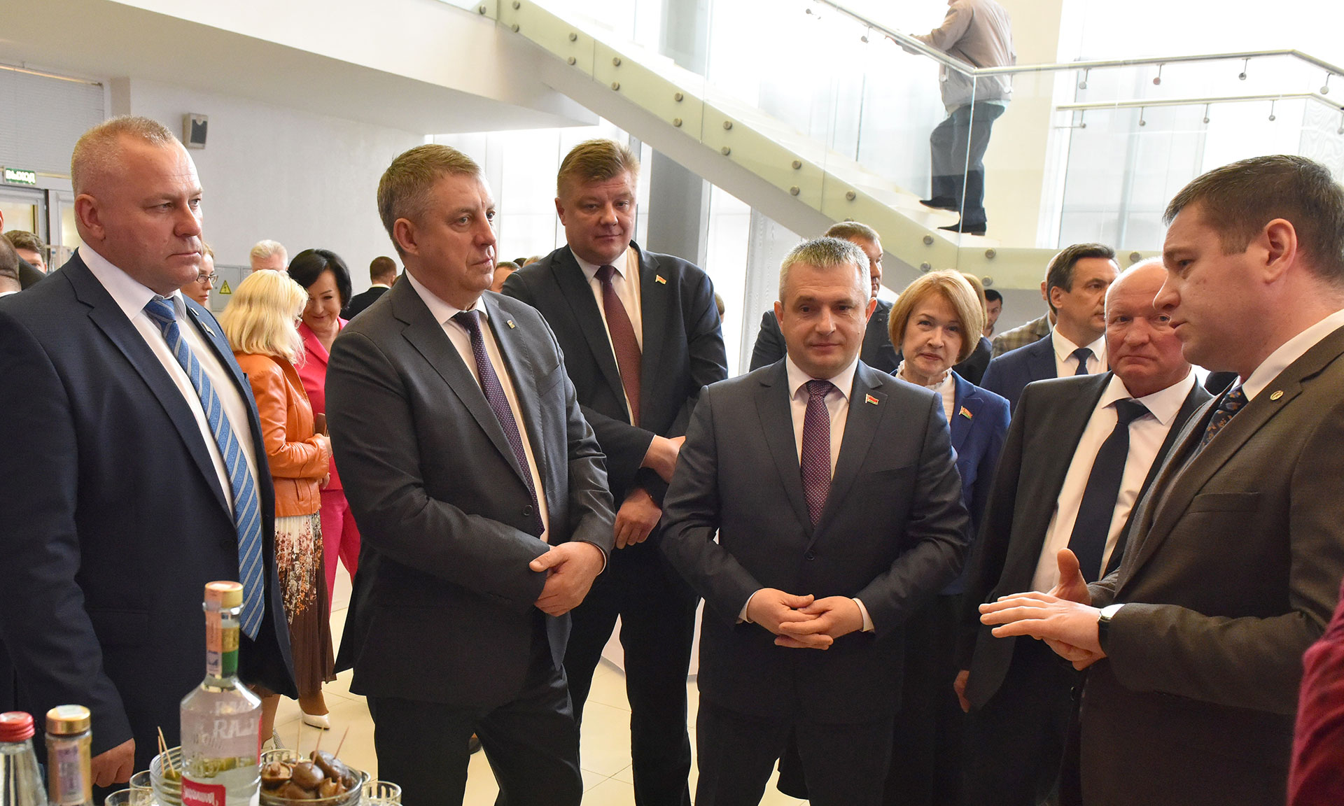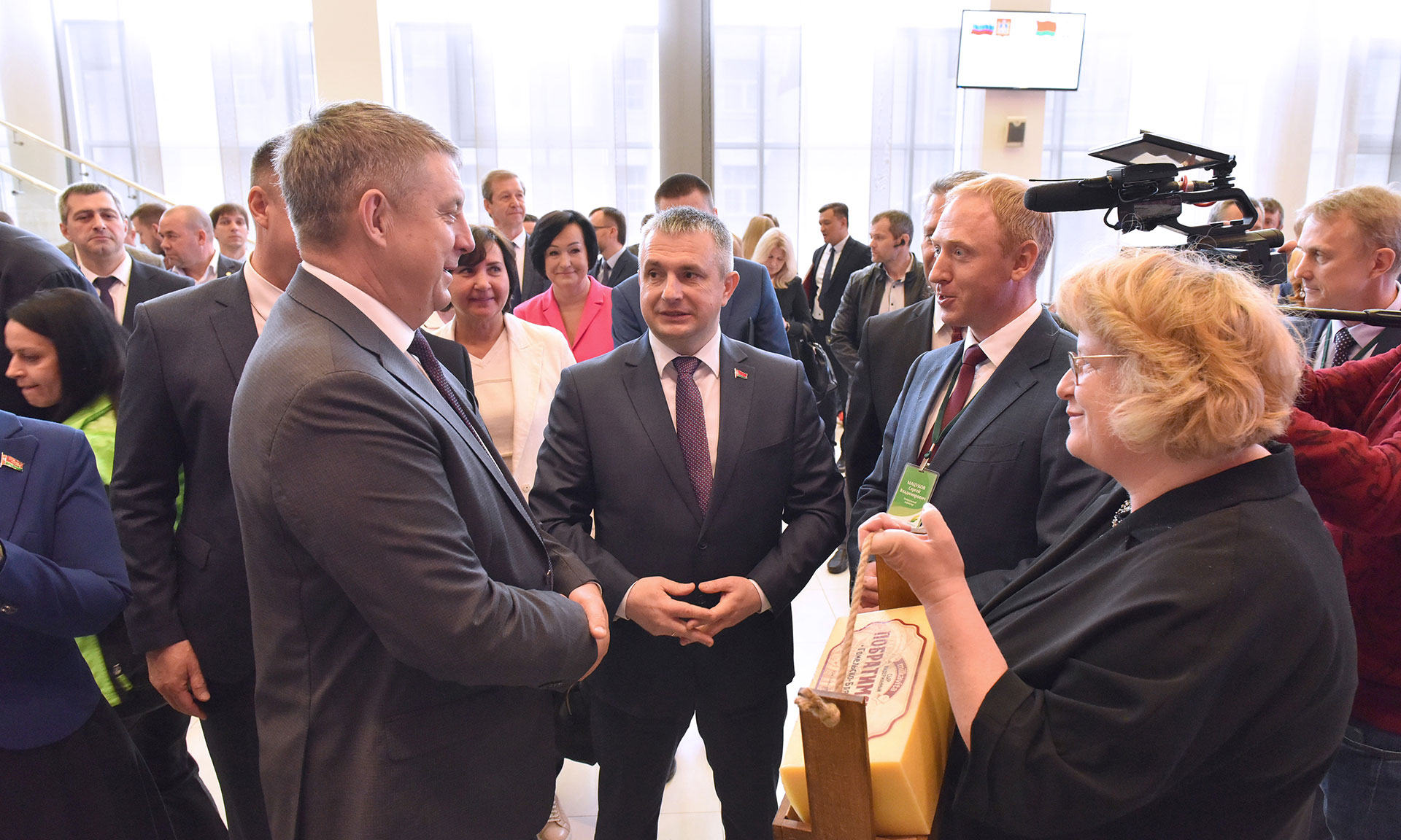 Председатель комитета по архитектуре и строительству Гомельского облисполкома Сергей Атрашков в своем докладе о строительном комплексе Гомельской области рассказал об имеющихся возможностях в отрасли, а председатель комитета по сельскому хозяйству и продовольствию Гомельского облисполкома Дмитрий Петрожицкий представил агропромышленный комплекс Гомельской области.
