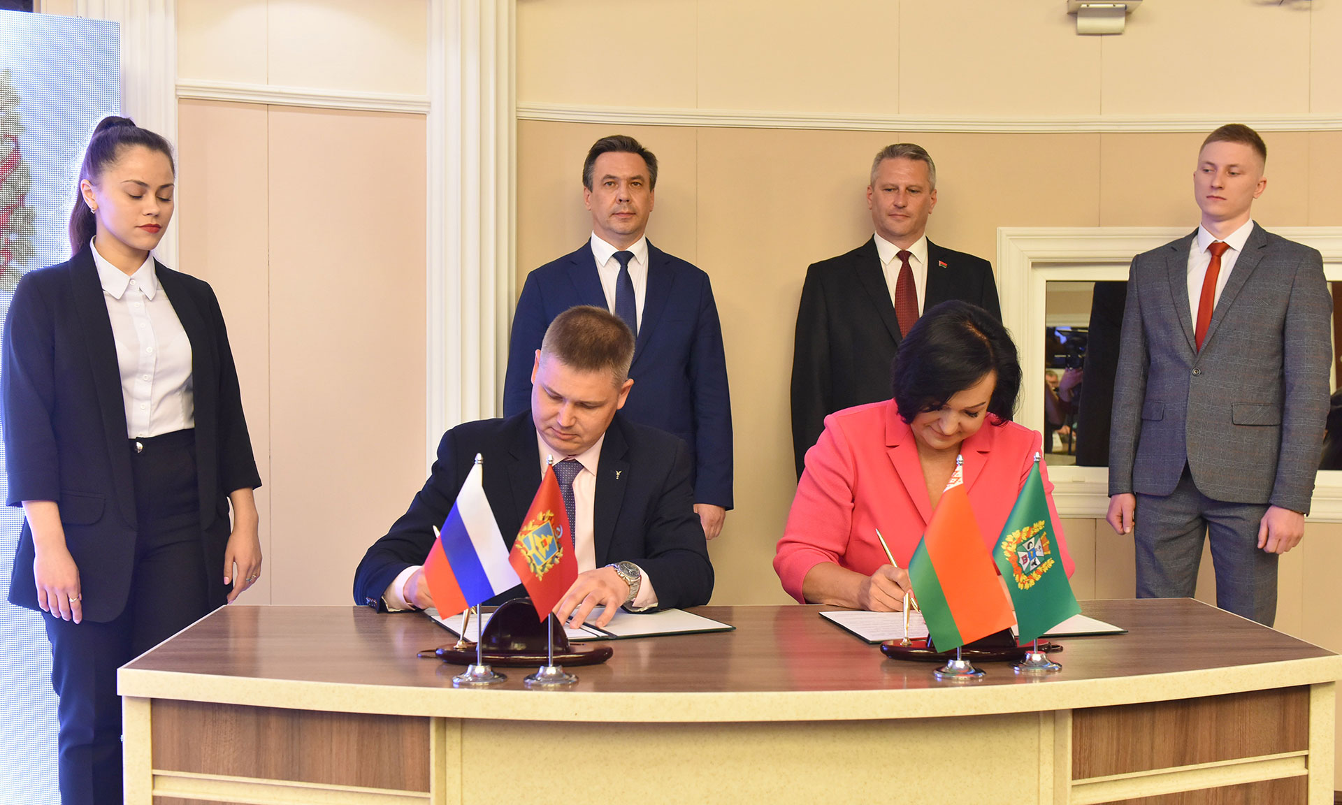 Соглашение о сотрудничестве подписали заместитель Губернатора Брянской области Владимир Реунов, заместитель председателя Гомельского облисполкома Андрей Конюшко, глава администрации СЭЗ «Гомель-Ратон» Антонина Ежова и заместитель руководителя Центра развития предпринимательства торгово-промышленной палаты Брянской области Сергей Гудовский.