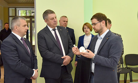 Губернатор Брянской области Александр Богомаз, председатель Гомельского областного исполнительного комитета Иван Крупко, председатель Брянской областной Думы Валентин Суббот ознакомились с работой промышленных предприятий Гомельской области.