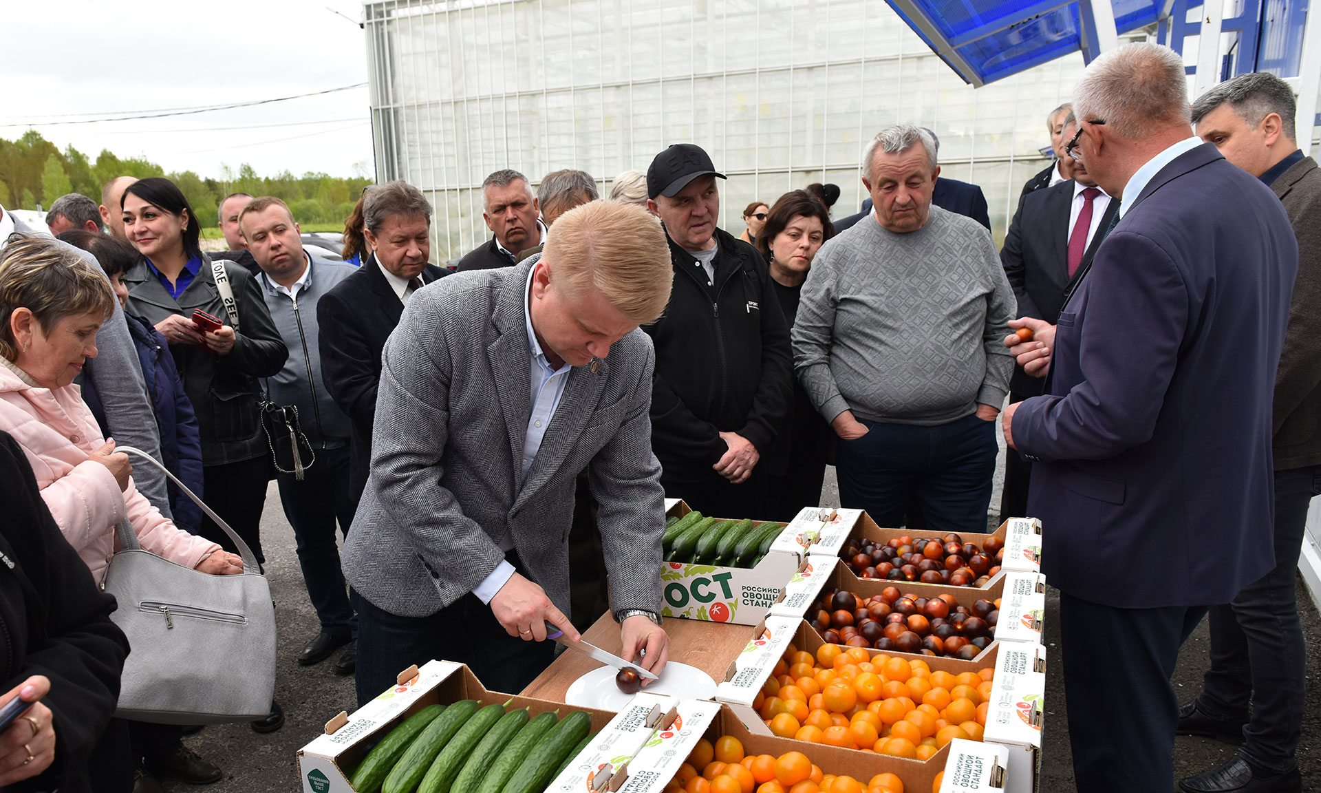 Гостям из ДНР и ЛНР представили широкую линейку продукции тепличного комбината, а также рассказали об особенностях выращивания овощей закрытого грунта. Представители делегации увидели, в каких условиях растут томаты и огурцы и попробовали разные сорта.