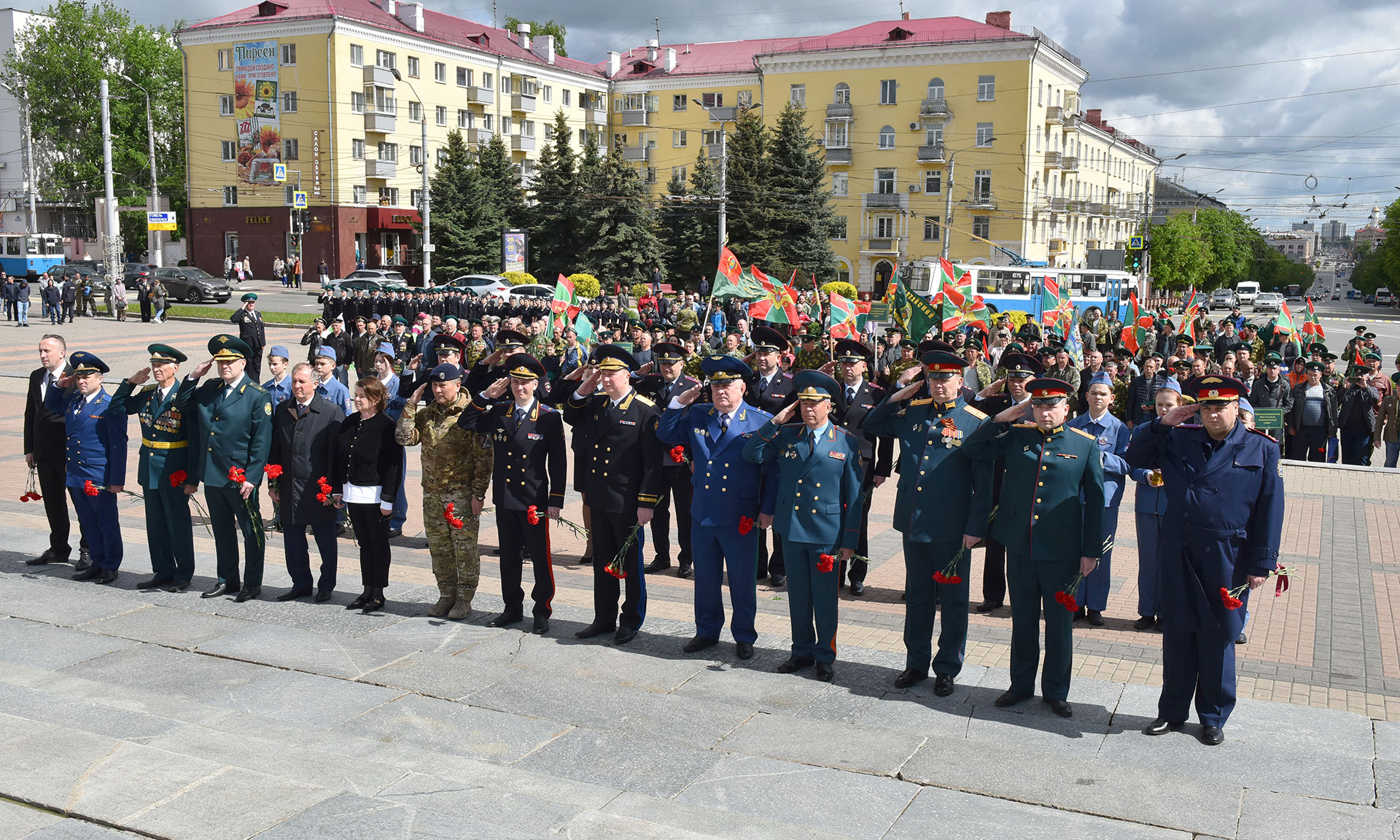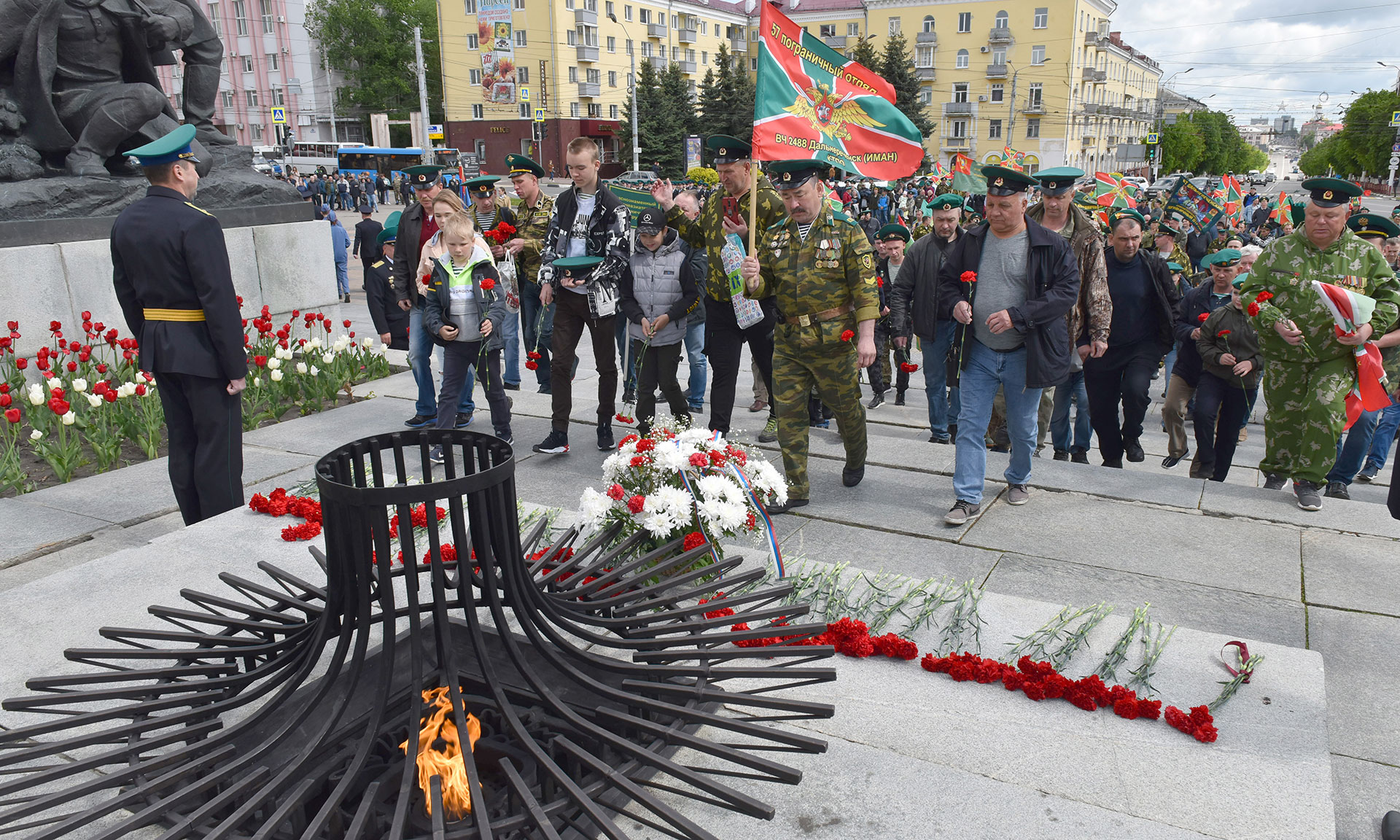 В память обо всех воинах, которые погибли, защищая границы нашей страны, в Брянске, на площади Партизан, цветы к Вечному огню памяти народной возложили Губернатор Брянской области Александр Богомаз, председатель Брянской областной Думы Валентин Суббот, главный федеральный инспектор по Брянской области Андрей Дьячук, сенатор Российской Федерации Галина Солодун, депутат Государственной Думы Федерального Собрания Российской Федерации Николай Щеглов, прокурор Брянской области Александр Войтович, начальник управления ФСБ России по Брянской области Николай Рудь, начальник управления МВД России по Брянской области Владислав Толкунов, начальник управления Федеральной службы войск национальной гвардии Российской Федерации по Брянской области Иван Ванчугов, руководитель следственного управления Следственного комитета Российской Федерации по Брянской области Максим Лукичев, начальник главного управления МЧС России по Брянской области Вадим Уваркин, начальник пограничного управления ФСБ России по Брянской области Сергей Митюшин, начальник Брянской таможни Сергей Санакоев, военный прокурор Брянского гарнизона Александр Чеховских, глава города Брянска Марина Дбар, глава Брянской городской администрации Александр Макаров, заведующий отделом по взаимодействию с вооруженными силами и правоохранительными органами Брянской епархии, иерей Михаил Агешин, ветераны пограничной службы.