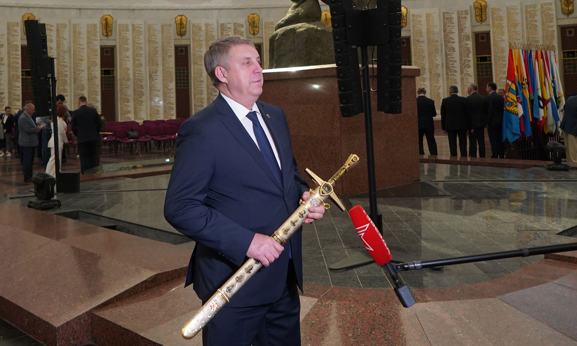 Брянская область является не только гостеприимной, но и героической. Мы чтим ратные подвиги наших предков и делаем все, чтобы наше подрастающее поколение, наши дети помнили, гордились и сохраняли память о тех победах, которые были добыты нашими отцами, дедами и прадедами. Этот меч — символ величия, гордости и отваги жителей Брянской области!