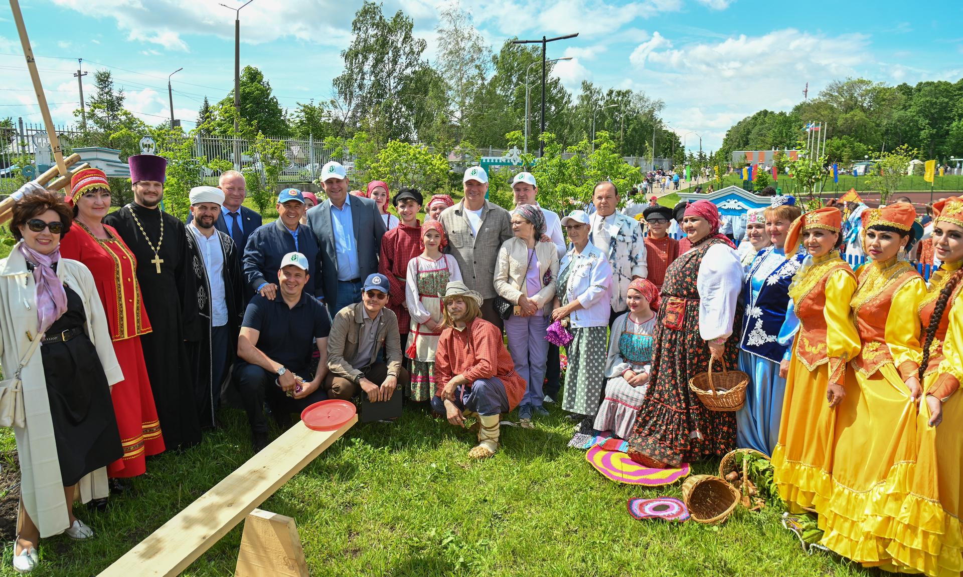 Рустам Минниханов, Марат Хуснуллин и Александр Богомаз в рамках Сабантуя посетили национальные подворья: татарское, русское, чувашское, кряшенское подворье, «восточный базар». Гости также осмотрели площадку интерактивных игр.