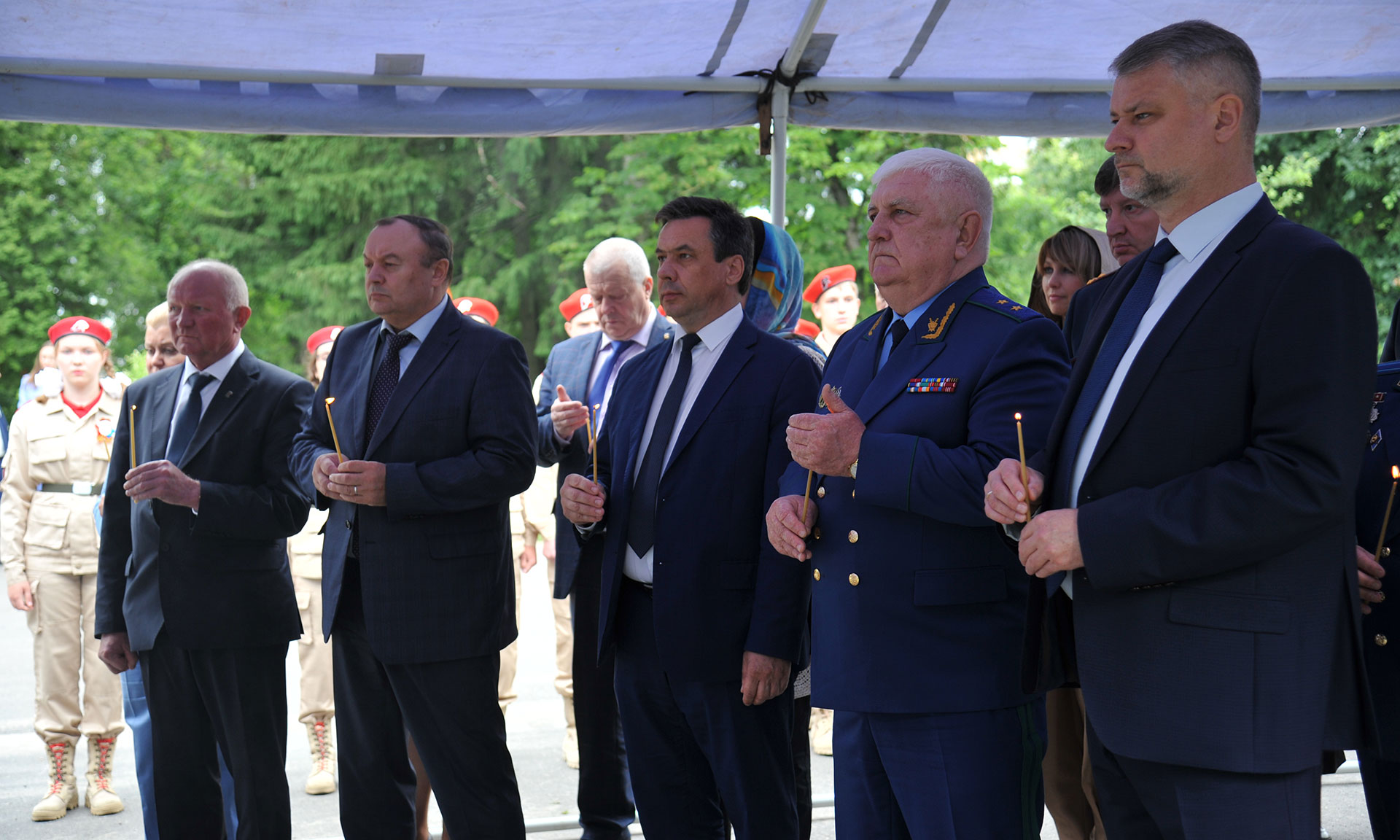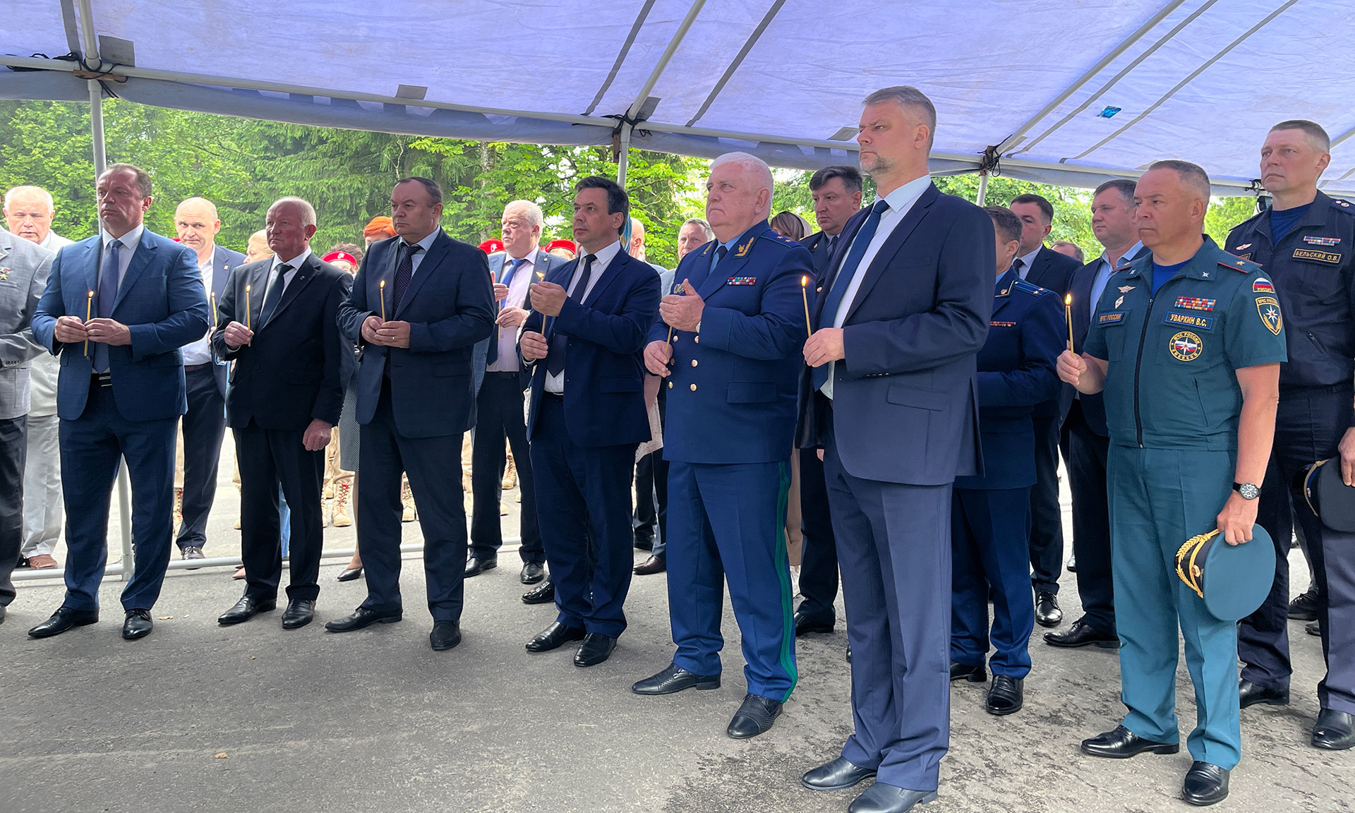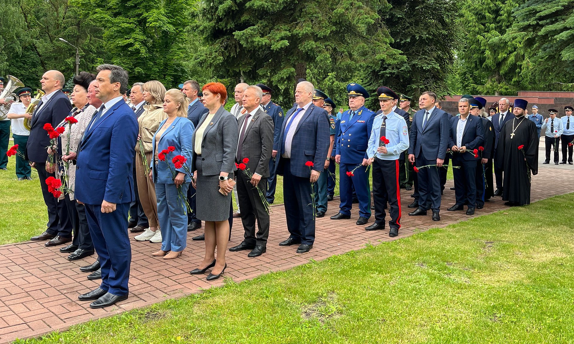 В сопровождении почетного караула Пограничного управления ФСБ России по Брянской области и духового оркестра войск национальной гвардии Российской Федерации по Брянской области заместитель Губернатора Юрий Филипенко, заместитель председателя областной Думы Сергей Антошин, главный федеральный инспектор по Брянской области Андрей Дьячук, Герой России, заместитель командира ОМОН Управления федеральной службы войск Национальной гвардии Российской Федерации по Брянской области Андрей Фроленков, Герой России председатель комитета Брянской областной Думы Александр Постоялко, Митрополит Брянский и Севский Александр возложили венок и цветы к могиле Неизвестного солдата.