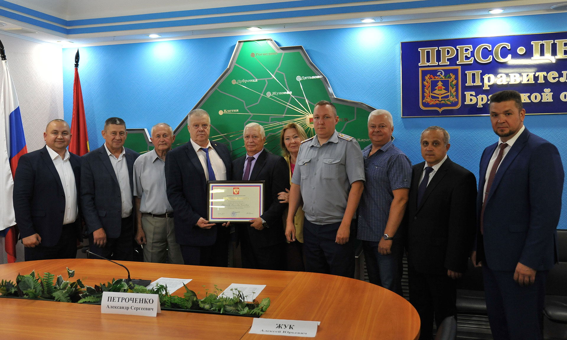 19 июля в пресс-центре Правительства Брянской области состоялась церемония награждения, в которой приняли участие временно исполняющий обязанности заместителя Губернатора Брянской области Александр Петроченко, руководство департамента региональной безопасности Брянской области, члены комиссии.