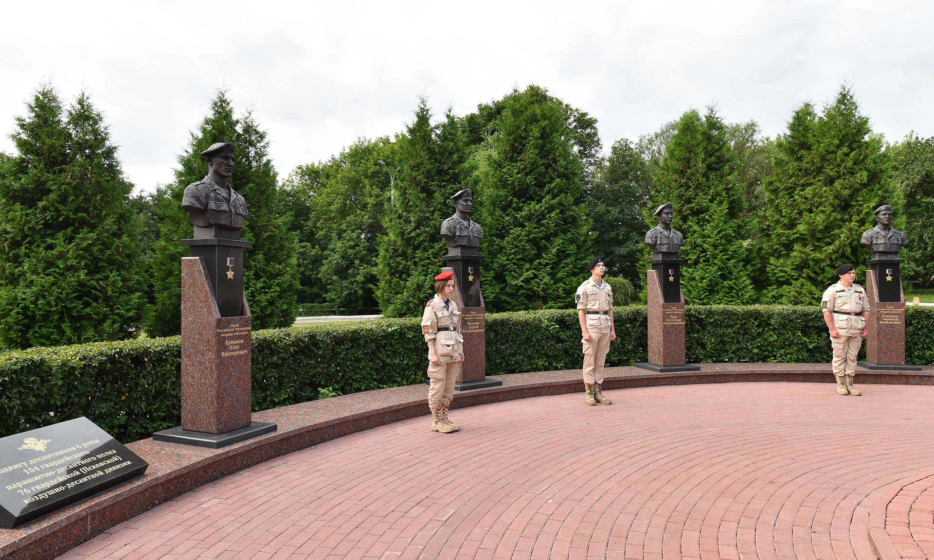 Сегодня можно сказать, что дела тех первых воинов, которые заложили основу и традиции воздушно-десантных войск, наших отцов и дедов, которые воевали на фронтах Великой Отечественной войны, продолжили их наследники. Это и война в Афганистане, это и боевые действия в Чечне, где 6-я рота своим подвигом навсегда вошла в историю нашей страны. Мы с вами сегодня присутствуем здесь, где наши земляки, Герои Российской Федерации, награжденные орденом Мужества, навеки воплощены в этих бюстах.