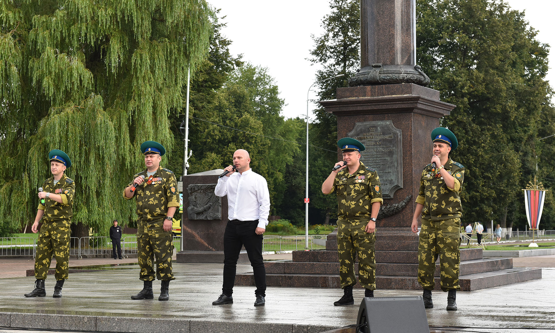 В торжественном мероприятии на площади Воинской Славы приняли участие Губернатор Брянской области Александр Богомаз, председатель Брянской областной Думы Валентин Суббот, иеромонах Корнилий (Недбаевский), Герой Российской Федерации Александр Постоялко, Герой Российской Федерации Андрей Фроленков, первый заместитель председателя Комитета Государственной Думы по туризму и развитию туристической инфраструктуры Николай Валуев, депутат Государственной Думы Федерального Собрания Российской Федерации Николай Щеглов, председатель Брянского областного суда Александр Курганов, начальник УФСБ России по Брянской области Николай Рудь, начальник УМВД России по Брянской области Владислав Толкунов, начальник ГУ МЧС России по Брянской области Вадим Уваркин, заместитель начальника Управления — начальник центра лицензионно-разрешительной работы управления Федеральной службы войск национальной гвардии по Брянской области Андрей Борисов, начальник УФСИН России по Брянской области Сергей Герасимов, военный комиссар Брянской области Марат Урмансов, заместители Губернатора Брянской области, заместители председателя Брянской областной Думы, глава города Брянска Марина Дбар, глава Брянской городской администрации Александр Макаров, руководители исполнительных органов государственной власти Брянской области, коллективы судебной системы, прокуратуры и правоохранительных органов Брянской области, гости и жители города Брянска.