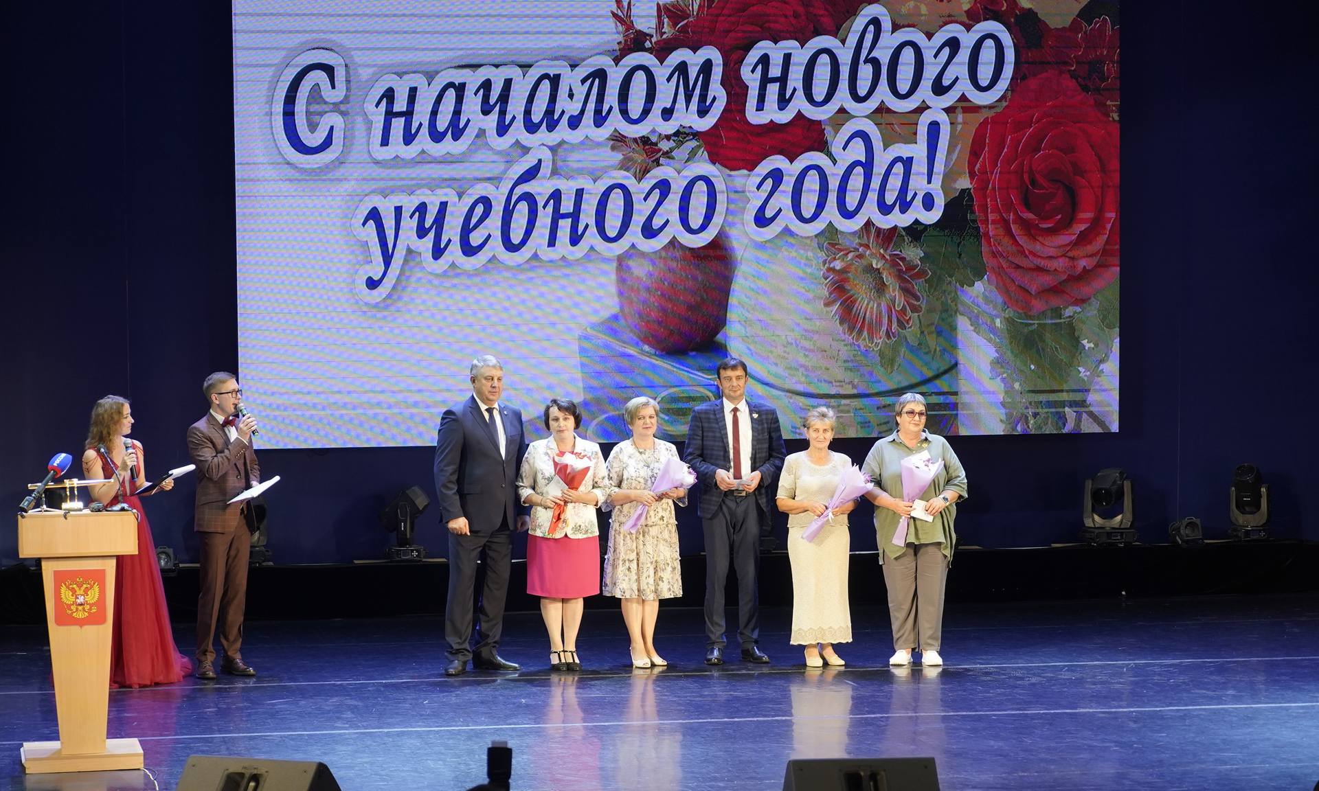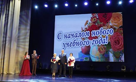 В зале присутствовали ветераны, верные и мудрые наставники, посвятившие свою жизнь профессии учителя. Накануне нового учебного года им вручили цветы под звуки песни «Молодой учитель», автор которой, Виктор Тищенко, директор Брянского регионального Центра эстетического воспитания «Родники», заслуженный работник культуры РСФСР.