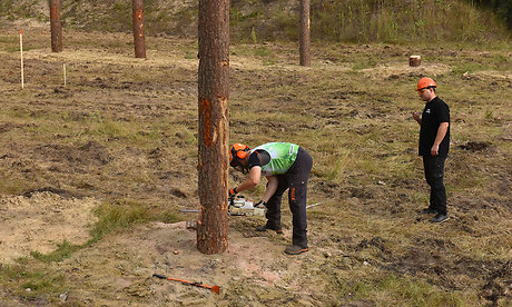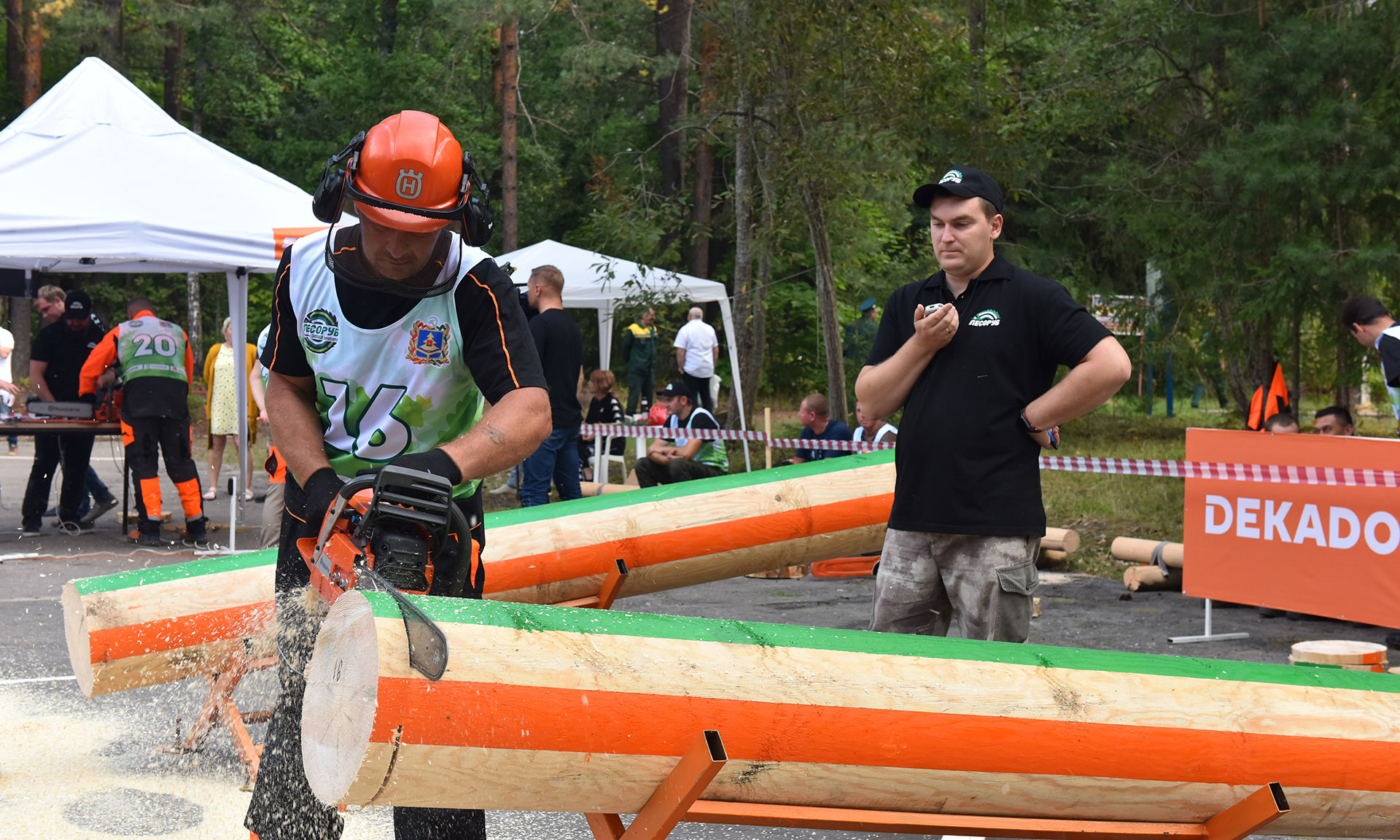 26 августа на территории мемориального комплекса «Лесникам-партизанам» учебно-опытного лесничества стартовал VIII открытый чемпионат Брянской области среди вальщиков леса с бензомоторными пилами «Лесоруб-2022». В течение двух дней спортсмены будут состязаться в шести упражнениях: валка дерева, точная раскряжёвка, раскряжёвка комбинированным резом, обрезка сучьев, замена цепи и командная эстафета.