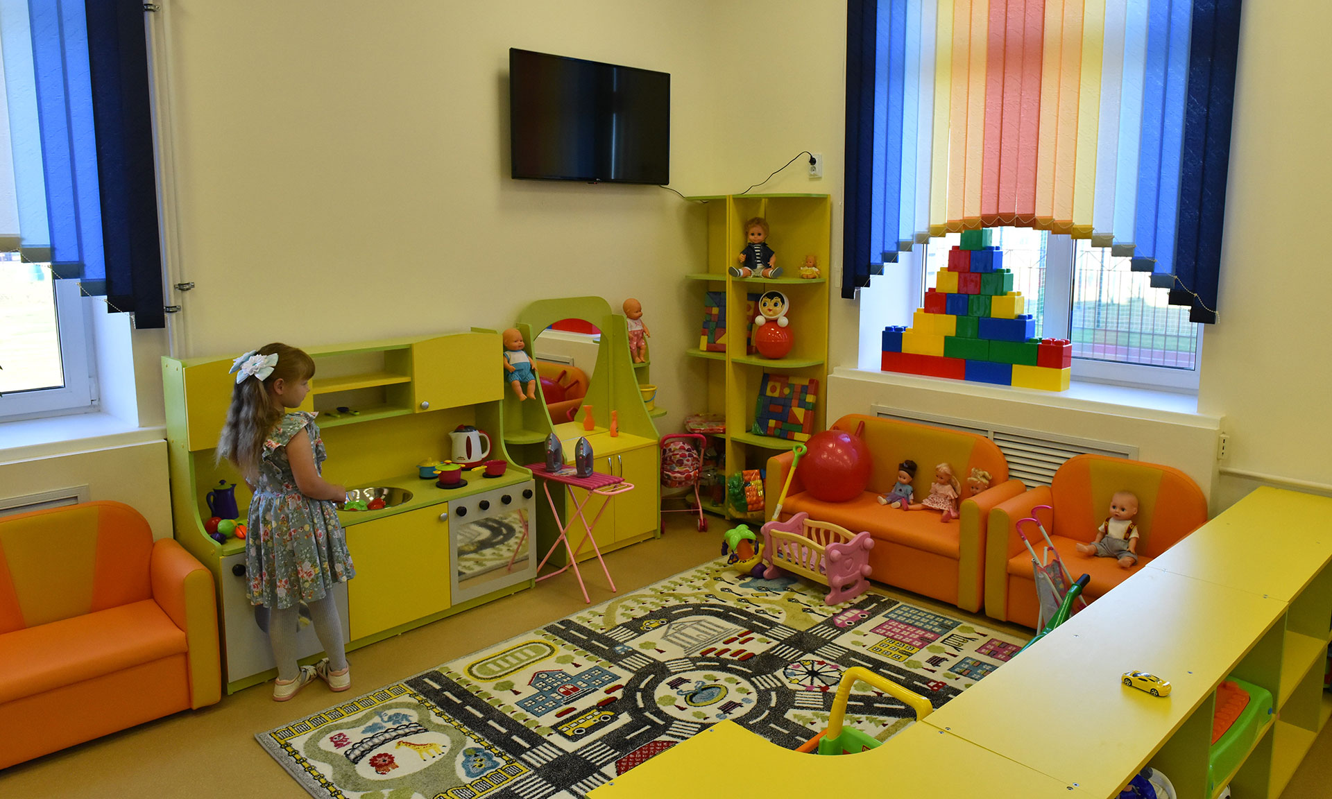 В детском саду будут находиться две разновозрастные группы. Он рассчитан на сорок воспитанников. В группах имеются просторные раздевалки, игровые комнаты, спальни, раздаточные для еды. Приобретено игровое оборудование, студия для рисования песком. Все игрушки российского производителя, много развивающих игр.