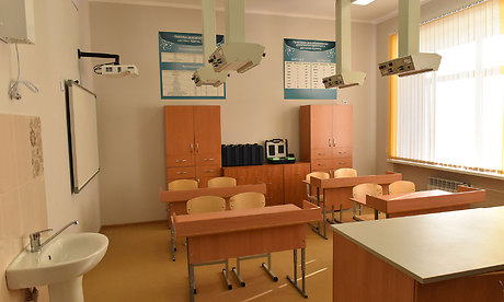 После открытия почетные гости отправились осматривать новую школу. В новом двухэтажном здании школы-детского сада для ребят созданы все условия. В школе расположено четырнадцать учебных кабинетов, все они оборудованы интерактивными досками, проекторами и компьютерным местом учителя. Кабинет физики оборудован потолочной системой. Приобретено оборудование для лабораторных работ, есть лаборатория. В кабинете химии созданы условия для проведения практических занятий, к каждой парте проведена вода, имеется шкаф для проведения опытов. Кабинет труда и домоводства оборудован швейными машинками и технологическим оборудованием, что позволит научить девочек шить и готовить. Локальная сеть высокоскоростного интернета предусматривает доступ к каждому классу по всей школе.