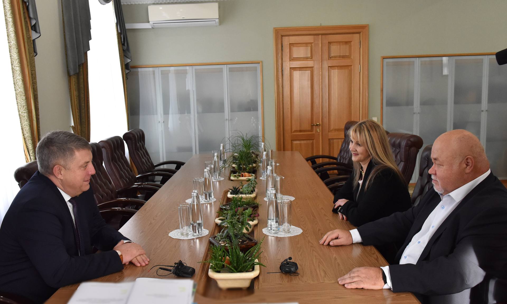 17 сентября состоялась рабочая встреча Губернатора Брянской области Александра Богомаза и заместителя генерального директора ФГУП «Российская телевизионная и радиовещательная сеть» Виктора Горегляда. Во встрече приняла участие директор филиала РТРС в Брянской области Ирина Малявко.