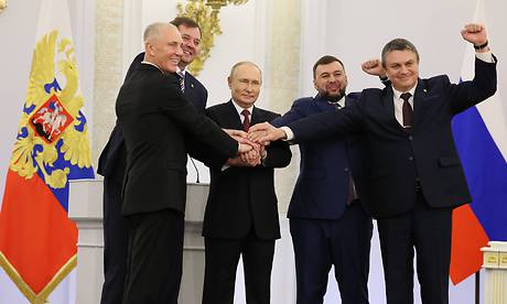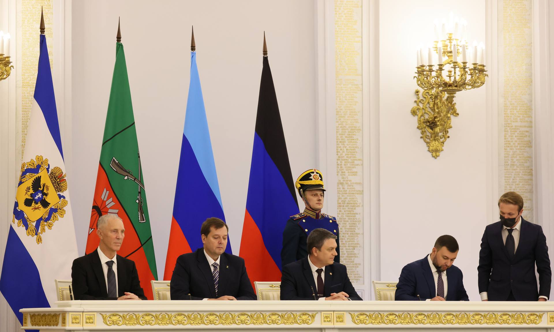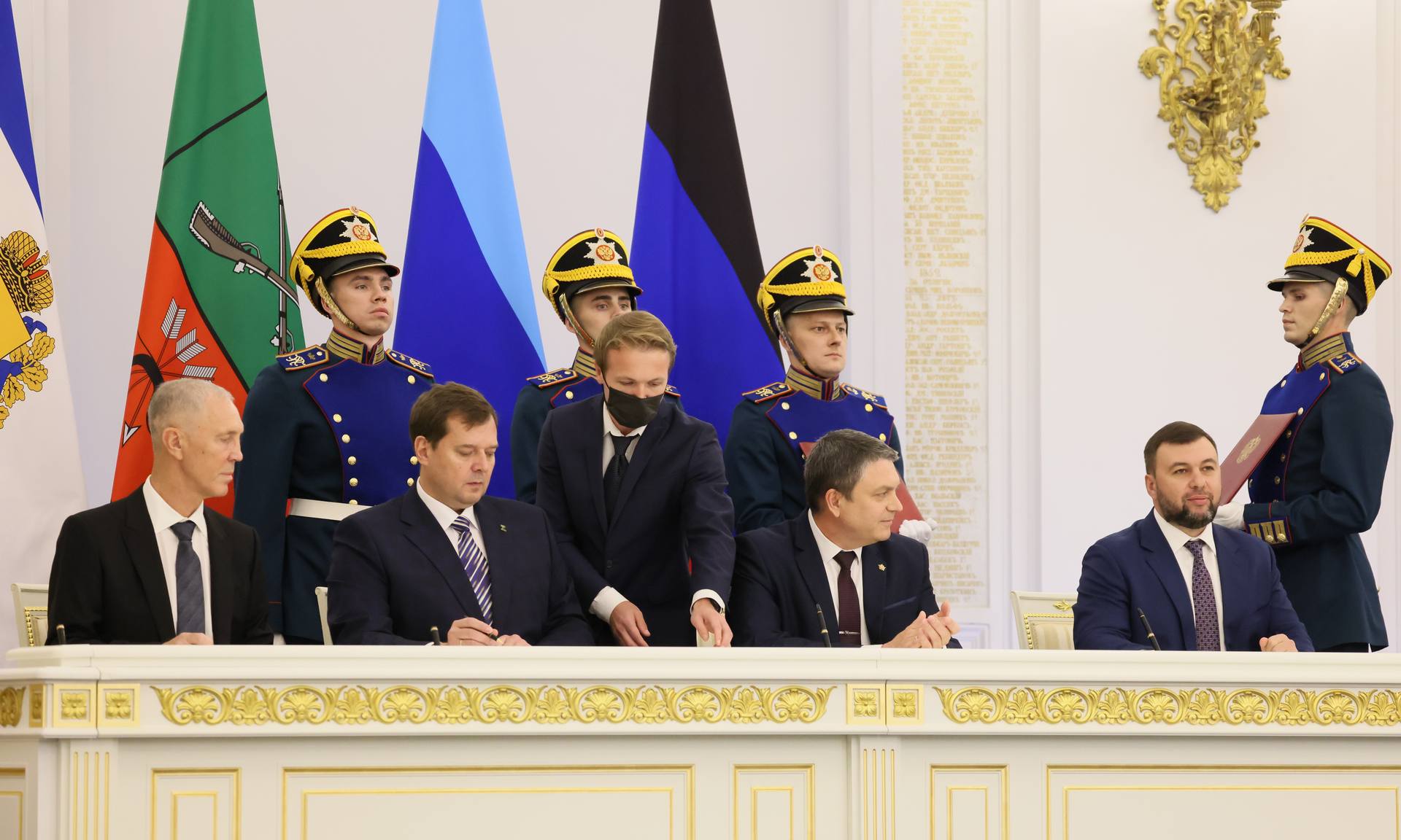 30 сентября в Георгиевском зале Кремля состоялась церемония подписания договоров о принятии в Россию Донецкой Народной Республики, Луганской Народной Республики, Запорожской области и Херсонской области и образовании новых субъектов Российской Федерации.
