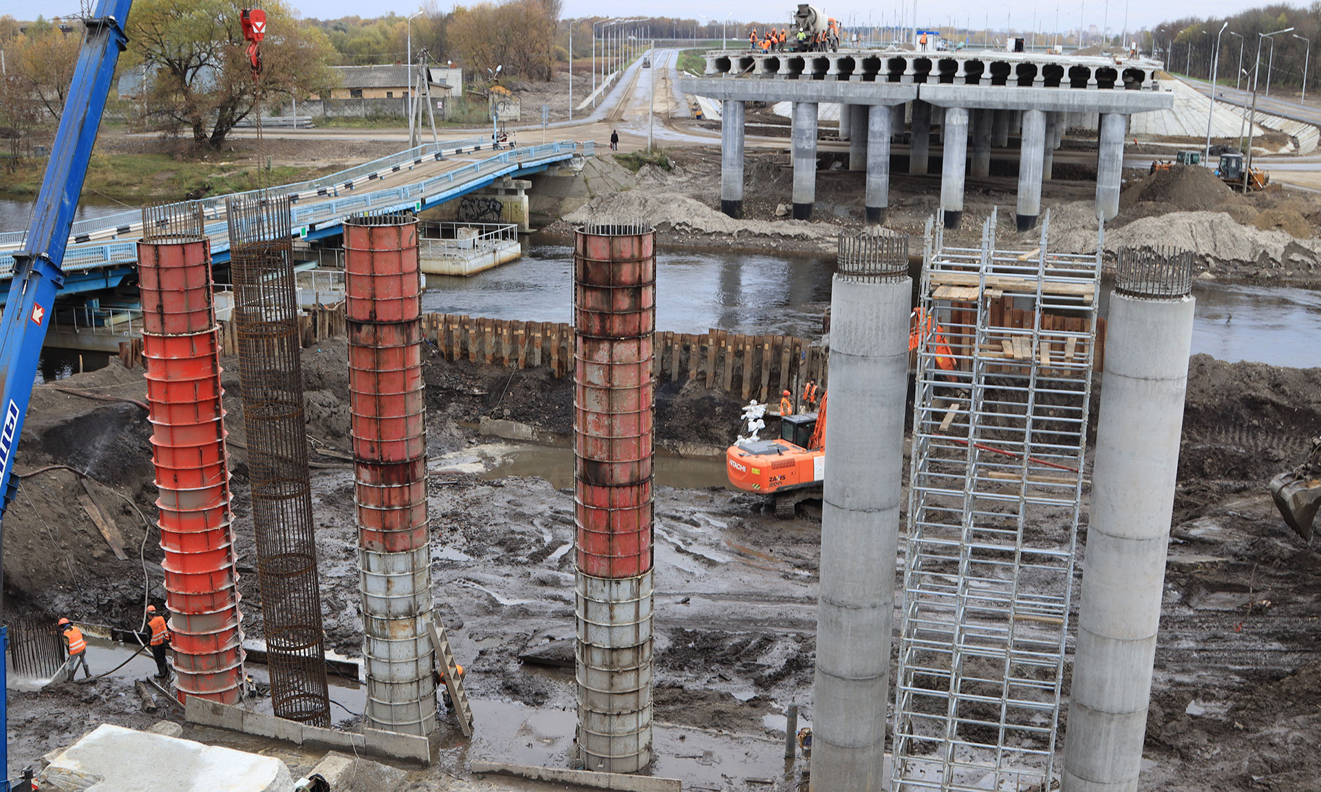 Работы здесь ведутся в рамках реализации нацпроекта «Безопасные качественные дороги». Длина четырехполосного моста составит 270 метров. Он соединит дорогу-дамбу «Брянск-I — Брянск-II» с улицей Калинина. В эти дни производится установка опалубки стоек на опоре № 8, одной из трех русловых. Под будущей опорой № 7 разрабатывается грунт в ростверке для подготовки под армирование, производится откачка воды.