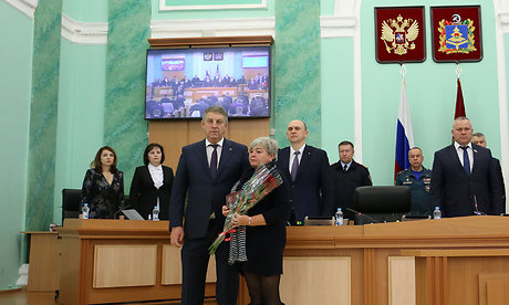Александр Богомаз вручил награду маме Ярослава Болтова Елене Викторовне: