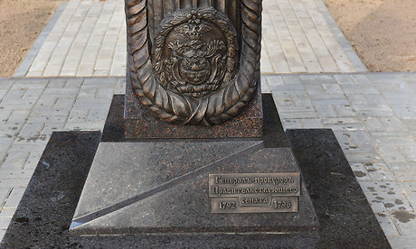 Благодаря инициативе Александра Петровича Войтовича, это уже третий памятник в рамках 300-летия российской прокуратуры. Первый памятник министру юстици Российской империи Ивану Щегловитову установлен в центре Стародуба. Второй памятник, Генеральному прокурору СССР Александру Рекункову, стоит около вашей прокуратуры. Получился полный охват истории российской прокуратуры: 18, 19 и 20 век.