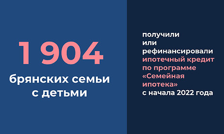 В рамках национального проекта «Демография», по данным на 1 октября 1 904 брянским семьям с детьми выдан или рефинансирован ипотечный кредит по ставке до 6% годовых на сумму 3 231,18 млн. рублей, в том числе: