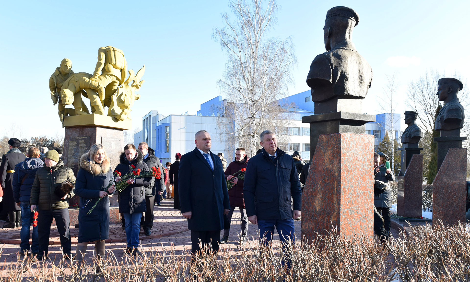 В знак памяти и благодарности воинам цветы к памятнику «Круговая оборона» и к бюстам воинов легендарной 6-й роты 104-го гвардейского парашютно-десантного полка 76-й воздушно-десантной дивизии на Аллее Славы возложили Губернатор Брянской области Александр Богомаз, председатель Брянской областной Думы Валентин Суббот, Герои Российской Федерации Андрей Фроленков и Александр Постоялко, председатель Арбитражного суда Брянской области Евгений Егоров, начальник управления ФСБ России по Брянской области Сергей Воронин, начальник управления МВД России по Брянской области Владислав Толкунов, начальник управления Федеральной службы войск национальной гвардии Российской Федерации по Брянской области Иван Ванчугов, руководитель следственного управления Следственного комитета Российской Федерации по Брянской области Максим Лукичев, начальник пограничного управления ФСБ России по Брянской области Сергей Митюшин, начальник управления ФСИН России по Брянской области Сергей Герасимов, начальник Брянской таможни Сергей Санакоев, руководитель управления ФНС России по Брянской области Андрей Маркелов, руководитель ветеранской организации Вячеслав Губанов, воины-интернационалисты, участники боевых действий в Афганистане, матери и вдовы, чьи дети и мужья погибли при выполнении воинского долга по защите суверенитета и независимости Российской Федерации, руководители ветеранских организаций Брянской области ветераны боевых действий в Афганистане, заместители Губернатора Брянской области, заместители председателя Брянской областной Думы, руководители города Брянска, депутаты Брянской областной Думы, депутаты Брянского городского совета народных депутатов, руководители органов исполнительной власти Брянской области, представители Брянской епархии, кадеты, юнармейцы, юные друзья пограничников, представители казачества.