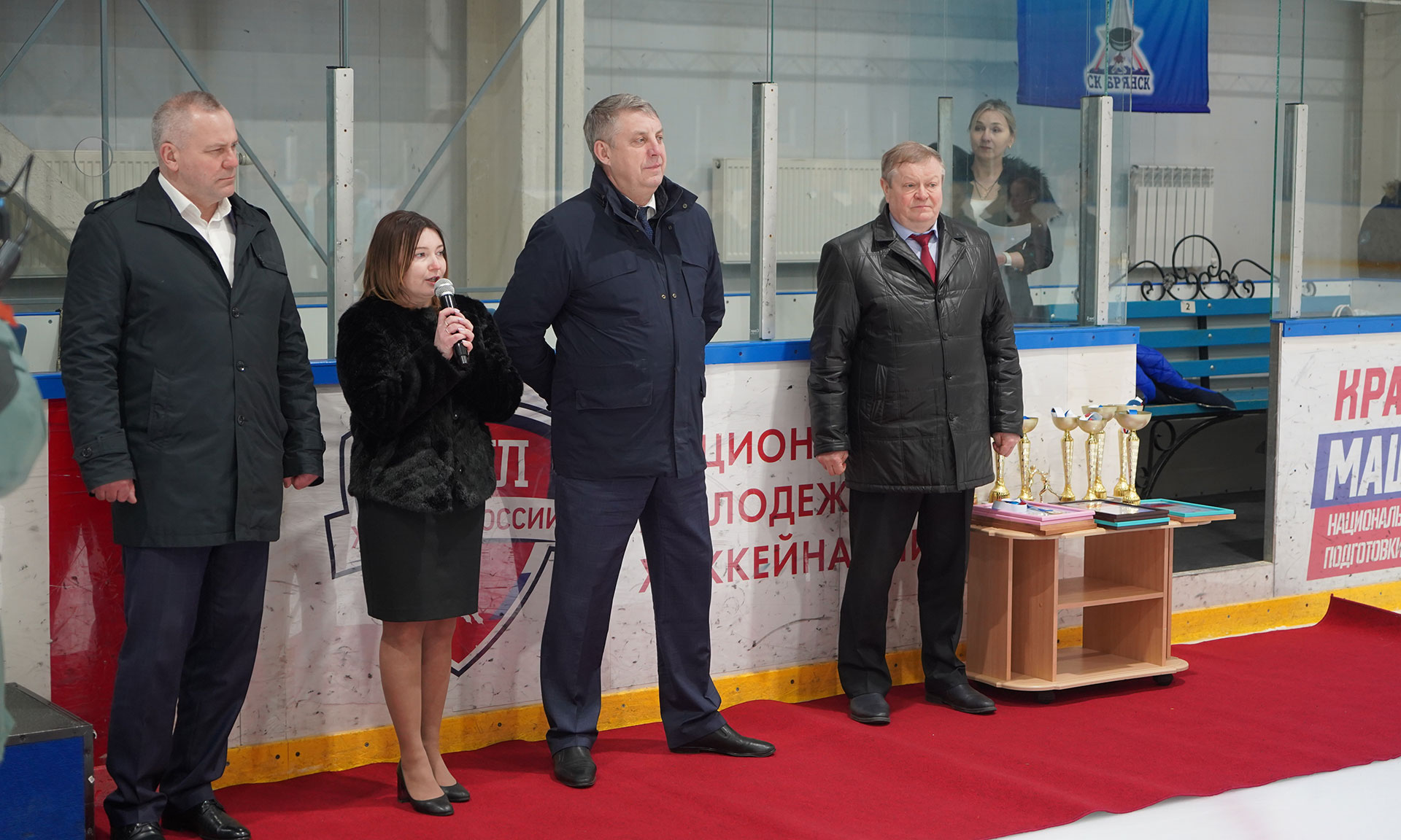 В торжественном открытии приняли участие Губернатор Брянской области Александр Богомаз, председатель Брянской областной Думы Валентин Суббот, исполнительный директор Федерации Брянской области по фигурному катанию на коньках Наталья Жемоедова.