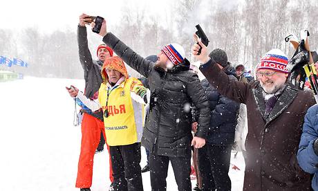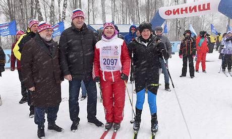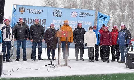 — Рад приветствовать всех на традиционной гонке «Лыжня России». Приятно поздравить вас с этим большим спортивным праздником. Мы думали, что снега не будет. Но, вот вам — и снег, вот вам — и настоящий зимний праздник! Всем желаю хорошего настроения и победы!