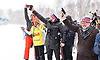 После официальных приветствий участники забега направились к старту гонки. Губернатор Александр Богомаз и почетный гость Президент Академии наук Чеченской Республики Джамбулат Умаров символическими выстрелами из стартового пистолета дали старт лыжной гонке.