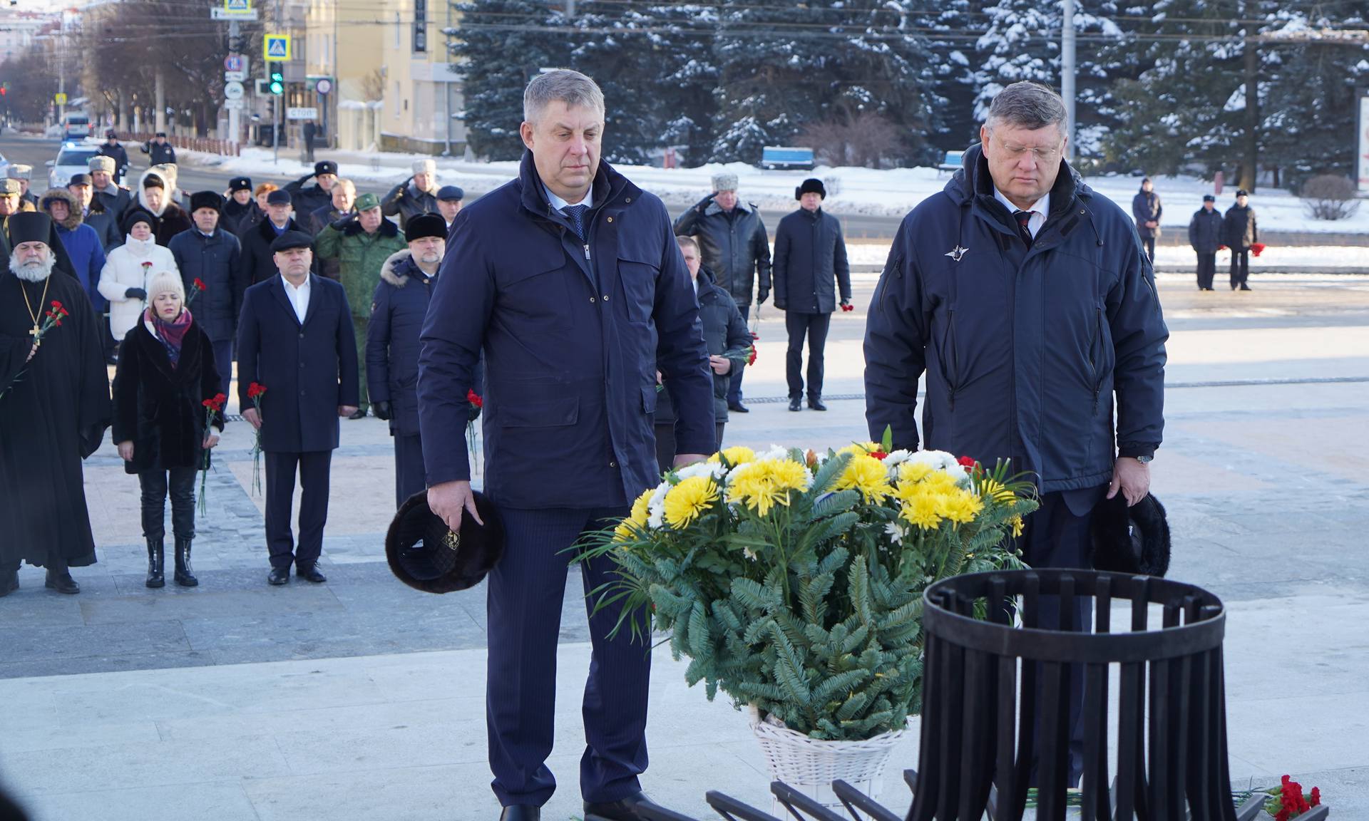В День защитника Отечества память воинов, отдавших жизнь за Родину, почтили Губернатор Александр Богомаз, статс-секретарь — заместитель Министра внутренних дел Российской Федерации Игорь Зубов, председатель Брянской областной Думы Валентин Суббот, главный федеральный инспектор по Брянской области Андрей Дьячук, Герой Российской Федерации Андрей Фроленков, Герой России Александр Постоялко, сенатор Российской Федерации Галина Солодун, депутат Государственной Думы Николай Щеглов, председатель Брянского областного суда Александр Курганов, председатель Арбитражного суда Брянской области Евгений Егоров, прокурор Брянской области Александр Войтович, начальник управления ФСБ России по Брянской области Сергей Воронин, , начальник управления МВД России по Брянской области Владислав Толкунов, начальник управления Федеральной службы войск национальной гвардии Российской Федерации по Брянской области Иван Ванчугов, начальник УФСИН России по Брянской области Сергей Герасимов, начальник Пограничного управления ФСБ России по Брянской области Сергей Митюшин, начальник Главного управления МЧС России по Брянской области Вадим Уваркин, руководитель управления ФНС России по Брянской области Андрей Маркелов, заместители Губернатора Брянской области, заместители председателя Брянской областной Думы, глава города Брянска Марина Дбар, глава Брянской городской администрации Александр Макаров, заведующий отделом Брянской епархии по взаимодействию с обществом и учреждениями культуры иеромонах Корнилий (Недбаевский).