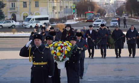 23 февраля руководители Брянской области возложили цветы к вечному огню на площади Партизан.