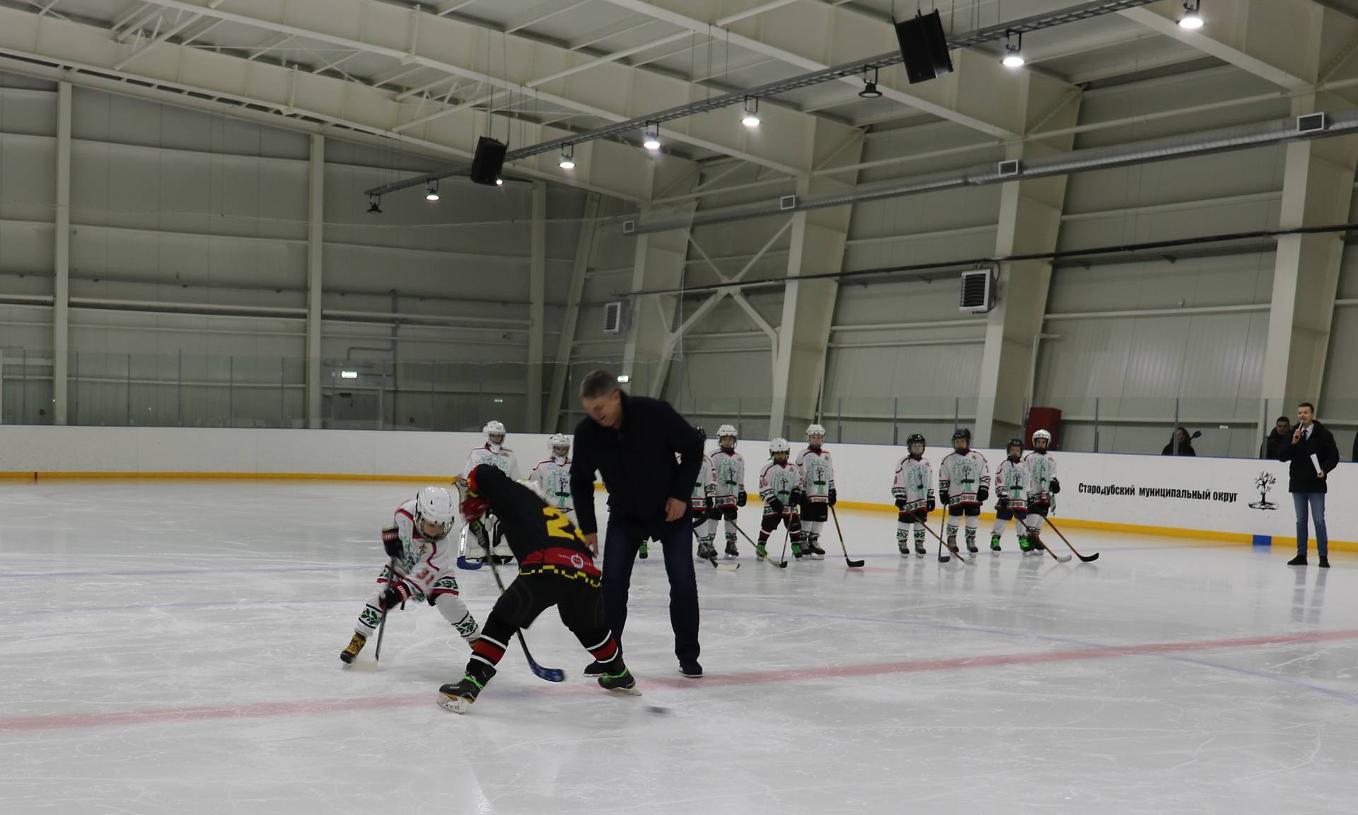 — Добрый день участники соревнований, дорогие наши гости-белорусы, уважаемые земляки. Я от всей души поздравляю вас с нашим общим праздником — Днем защитника Отечества. Сегодня на лёд вышли наши дети, будущее наших стран. И если говорить о празднике — Дне защитника Отечества, то он символизирует тех, кто служил, кто сегодня служит, или кто защищал и сегодня защищает нашу страну Россию и Республику Беларусь. Очень символично сегодняшнее проведение товарищеского матча между командой г. Гомеля, командой олимпийского резерва и чемпионами Брянской области прошлого года, командой г. Стародуба. Сегодня здесь, на площадке, встретятся наши дети, будущие защитники Республики Беларусь и будущие защитники нашей страны. У нас общее прошлое, общая история, общие исторические ратные подвиги наших предков, и у нас сегодня общее настоящее и общее будущее.