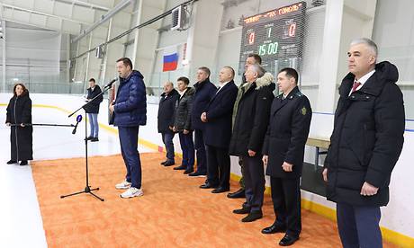 — Добрый день, уважаемые братья-россияне. Я вас всех горячо поздравляю с праздником! Это очень символично, что 23 февраля, в этот мужской праздник, здесь собрались играть именно в хоккей. Потому что давно было сказано: «В хоккей играют настоящие мужчины!»