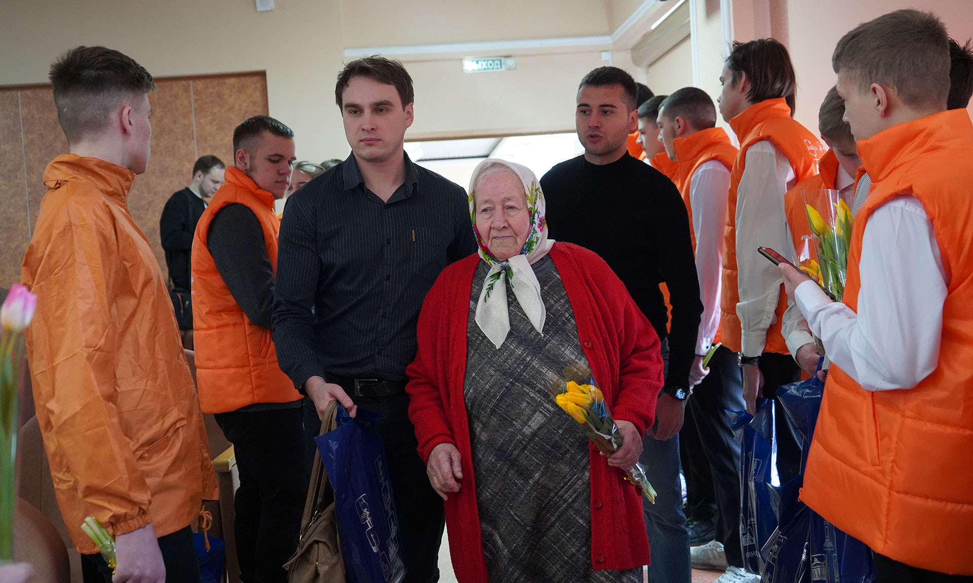 Перед началом торжественного мероприятия юнармейцы и волонтеры торжественно вручили матерям и вдовам цветы и памятные подарки от имени Губернатора Брянской области и Правительства Брянской области.