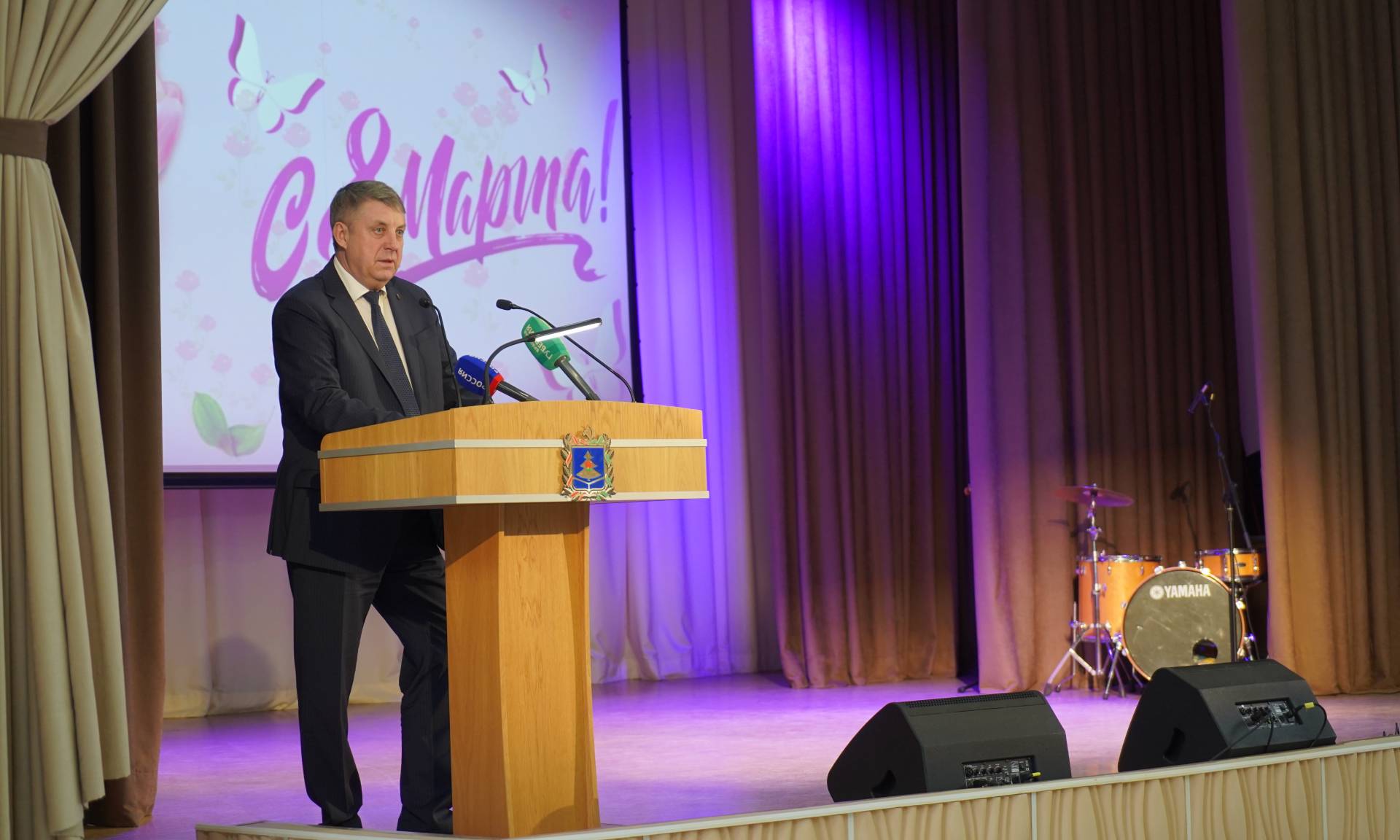 Для меня большая честь присутствовать сегодня здесь вместе с вами и поздравить вас, а в вашем лице всех женщин Брянской области с наступающим праздником, 8 Марта.