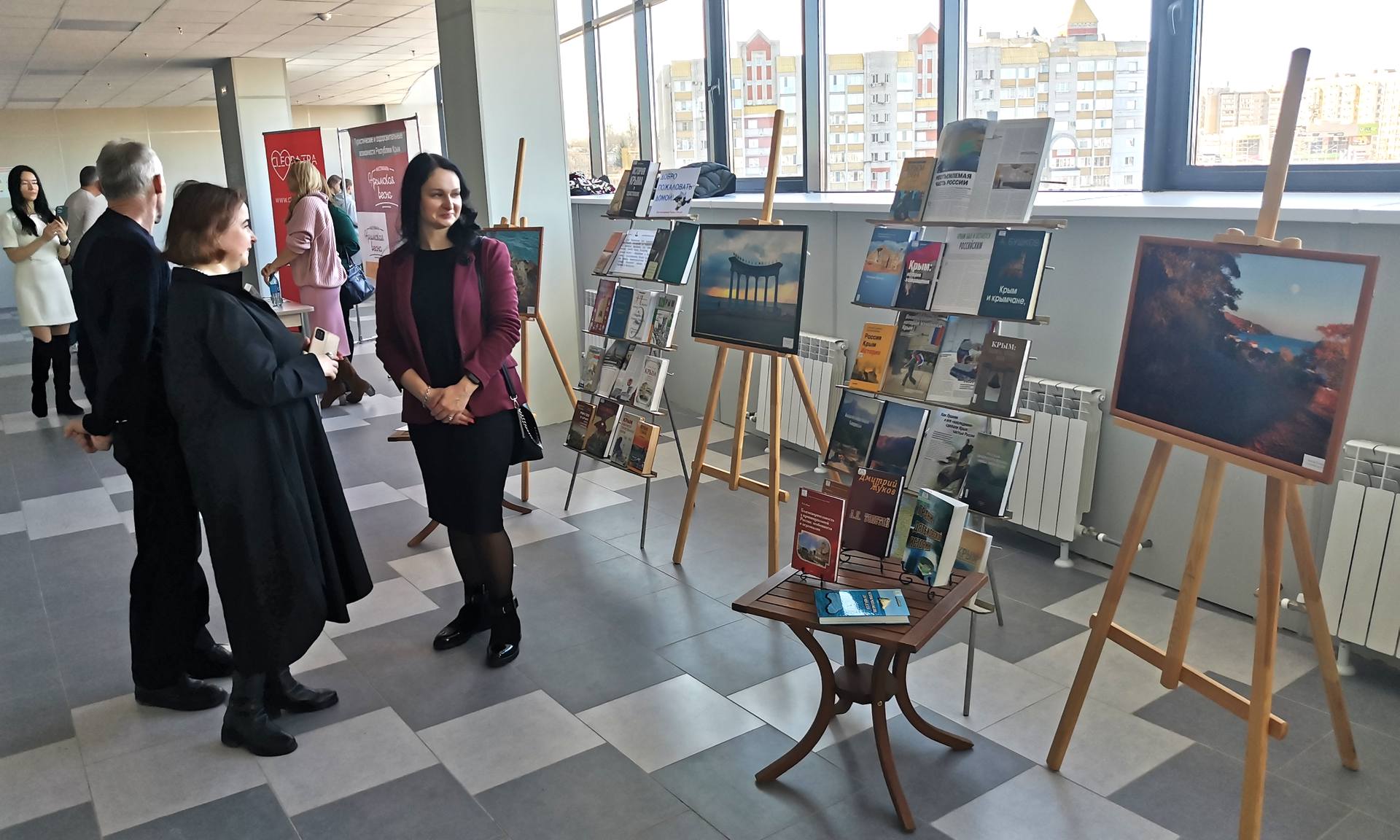 Зрители и участники праздничного концерта, приуроченного к историческому событию — воссоединению Крыма с Россией, смогли увидеть работы брянских художников, гравюры из фондов Брянского государственного краеведческого музея, уникальные издания Брянской областной научной универсальной библиотеки им. Ф. И. Тютчева.