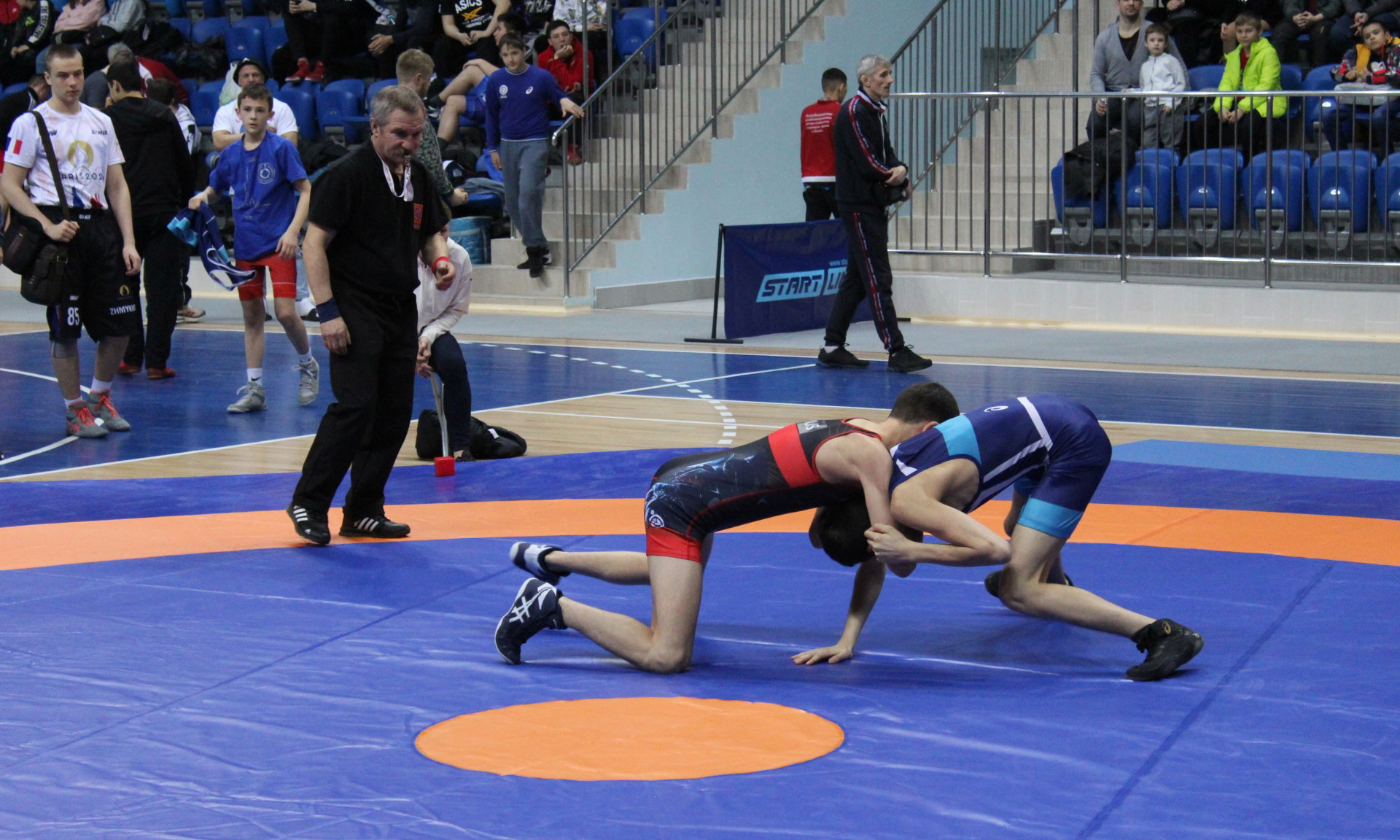 Первые турнирные схватки уже начались. Спортсмены показывают захватывающую борьбу. Стоит отметить, что участники соревнований сражаются не только за награды, но и за возможность участвовать в финальном этапе чемпионата России по спортивной борьбе.