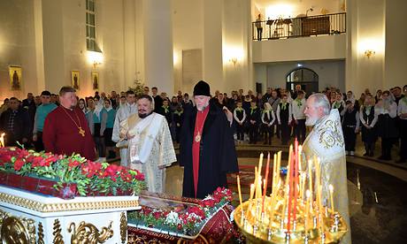 Епископ Владимир совершил Пасхальные Богослужения — полунощницу, Крестный ход, пасхальную заутреню и Литургию святителя Иоанна Златоуста. В полночь был совершен крестный ход вокруг кафедрального собора. За Пасхальной заутреней Владыка Владимир прочитал Слово огласительное святителя Иоанна Златоуста на Святую Пасху.