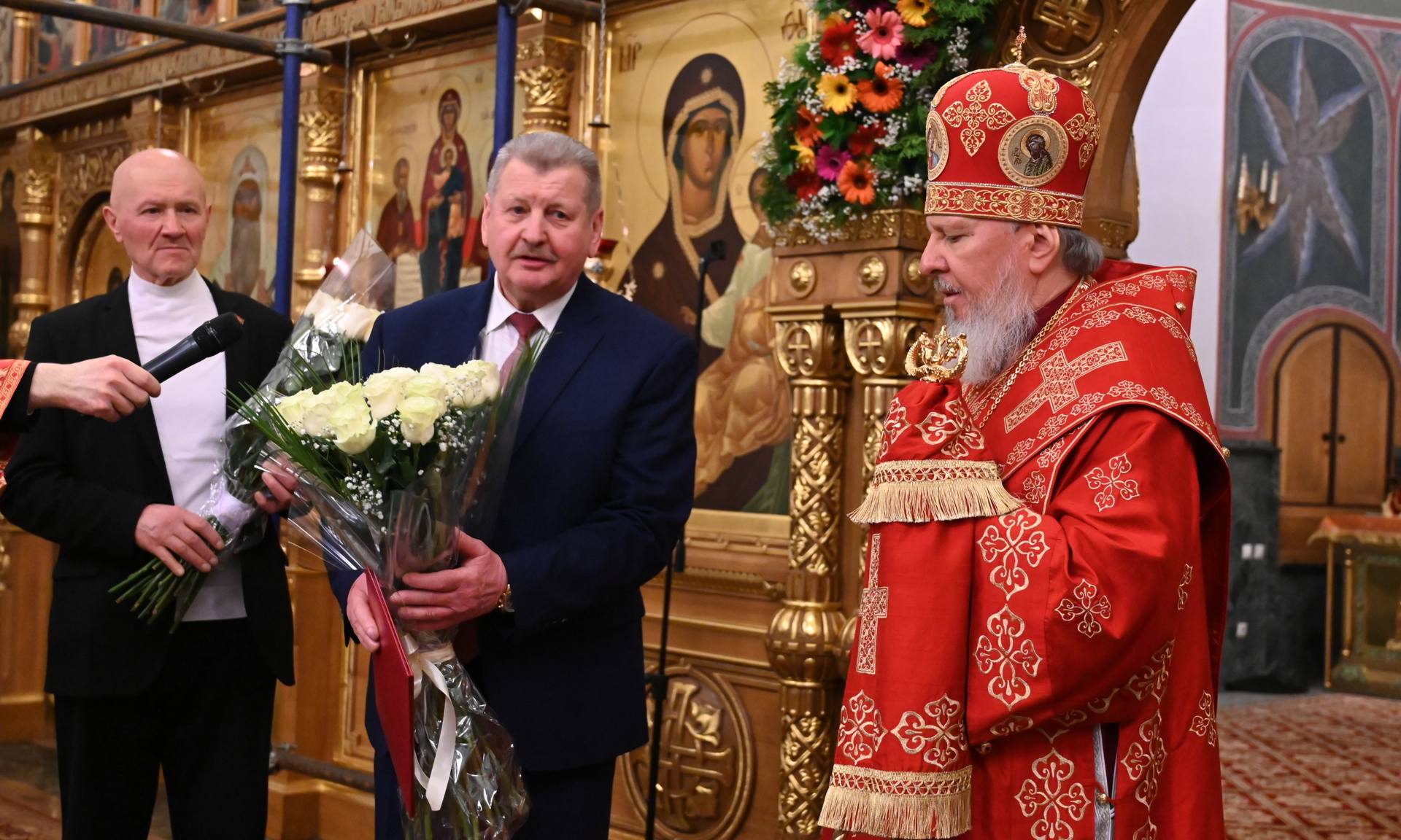 От имени Губернатора Брянской области Николай Симоненко поздравил Владыку Александра с праздником Светлого Христова Воскресения: