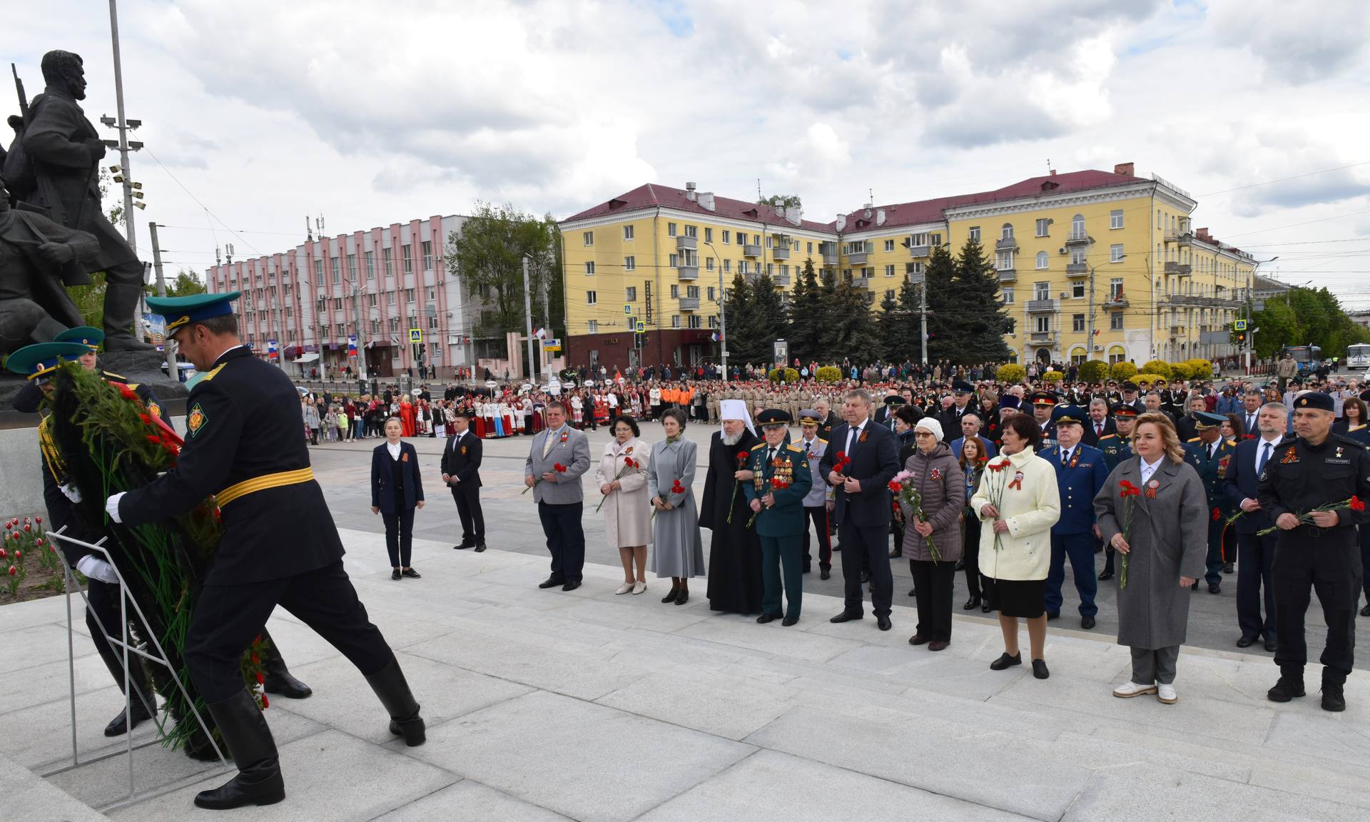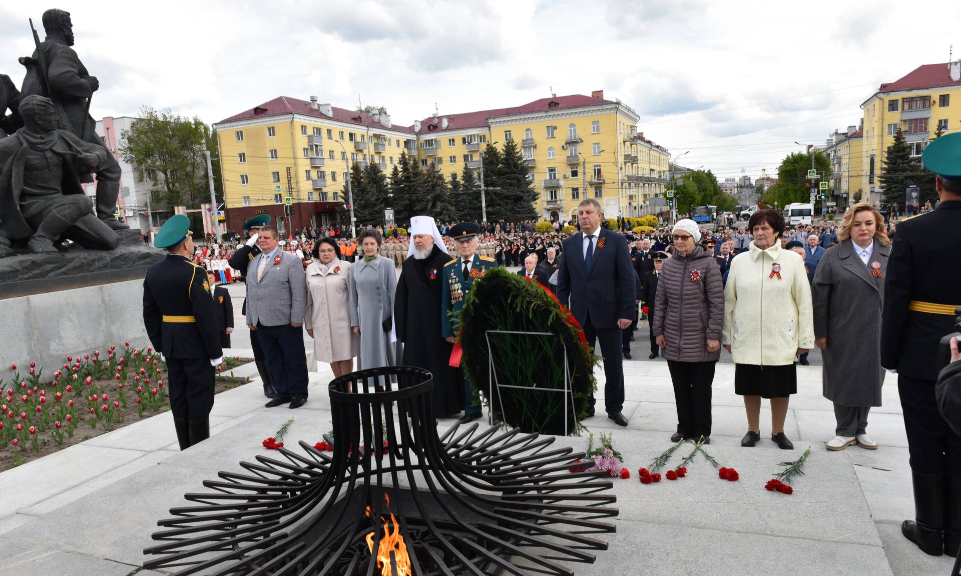 В официальной церемонии возложения приняли участие Губернатор Брянской области Александр Богомаз, митрополит Брянский и Севский Александр, ветеран Великой Отечественной войны 1941 — 1945 годов Николай Степанович Редикульцев, бывшая малолетняя узница фашистского концлагеря Роза Дмитриевна Трошина, Герои Российской Федерации Андрей Анатольевич Фроленков и Александр Викторович Постоялко, матери погибших защитников Отечества: председатель постоянного комитета Брянской областной Думы по образованию, науке, культуре и СМИ Людмила Федоровна Журавлева, член Общественной палаты Российской Федерации, член Брянского регионального отделения Общероссийской общественной организации семей погибших защитников Отечества Лидия Филипповна Ермакова, председатель Брянского регионального отделения «Комитет семей воинов Отечества» Марина Николаевна Седнева, Галина Георгиевна Василева;