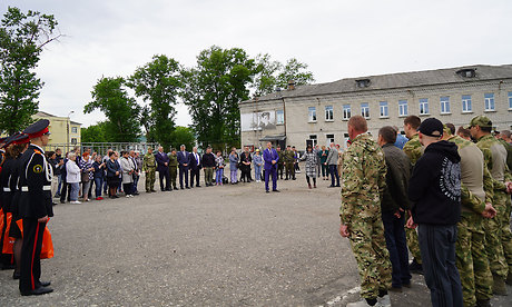 Испокон веков так всегда было, что Россия всегда была лакомым куском для всех. И мужчины шли защищать ее, шли воевать и побеждать. Сегодня пришла и ваша очередь. Берегите себя, пожалуйста. Вы нужны родным и близким. Вы нужны стране. Удачи! Здоровья! Чтобы все остались живы и вернулись Героями. Спасибо вам огромное! Спасибо!