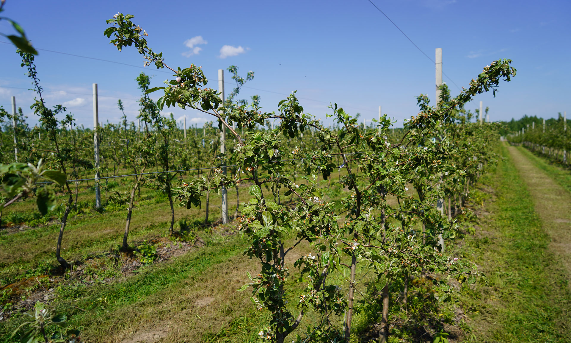В плодопитомнике с успехом вырастили районированные саженцы вишни, устойчивые к низким температурам и приспособленные к механической уборке, а также саженцы яблонь нескольких известных в мире сортов. С помощью современной садовой техники саженцы своевременно кормят, очищают землю от сорняков. В каждом ряду действует капельное орошение. Необходимый уход за молоденькими растениями ведут работники питомника.