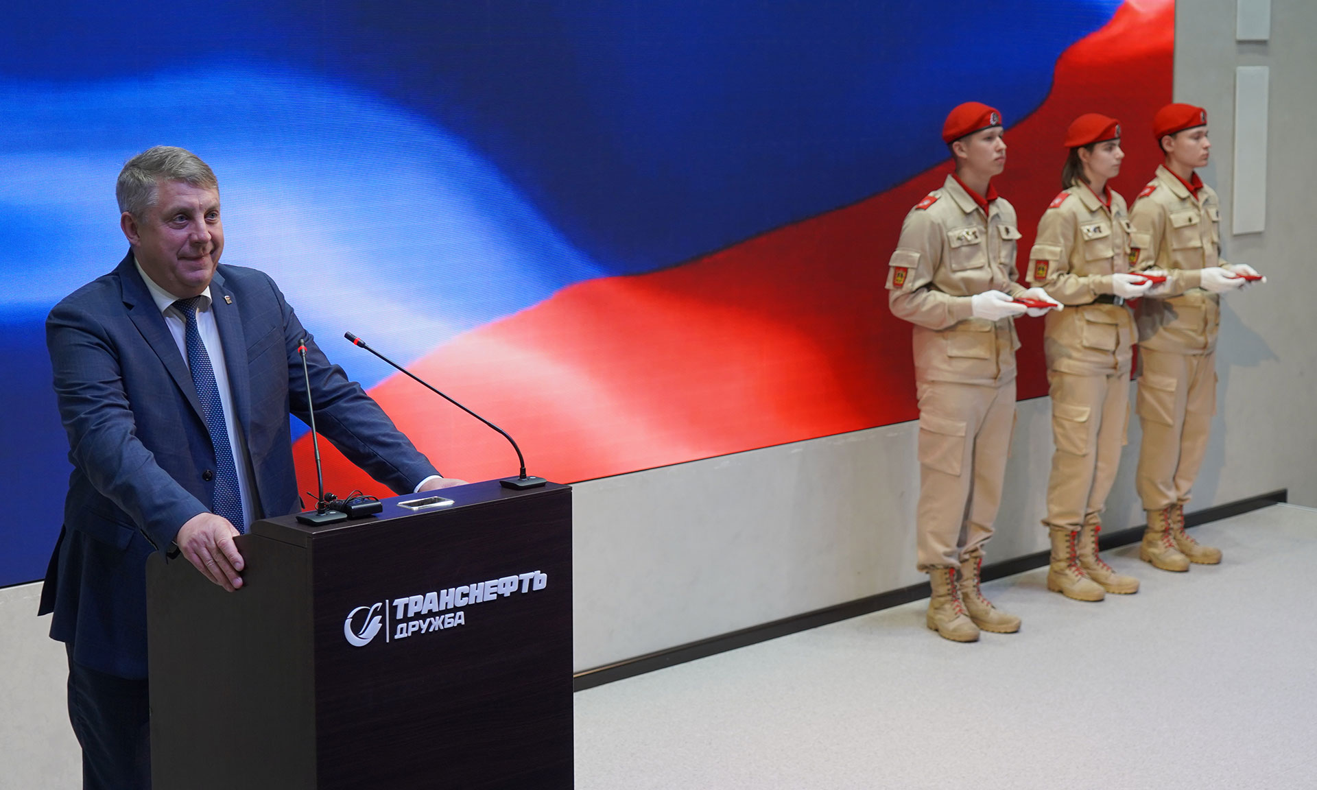 — Уважаемые коллеги, гости! Скажу откровенно, на передовой было сложно. Но всегда мы чувствовали, как нас поддерживает наше предприятие, наша «Дружба». Благодарим весь восьмитысячной коллектив, который помогал нам и нашим семьям, верил в нас и ждал. Особая благодарность генеральному директору АО «Транснефть — Дружба» Роману Валерьевичу Камозину и начальнику управления безопасности Александру Николаевичу Доронину. Спасибо всем детям работников, которые присылали нам рисунки и письма, от которых становилось легче на душе. Безусловно, неоценимую поддержку бойцам на передовой оказывает наша Брянская область во главе с Губернатором Александром Васильевичем Богомазом.