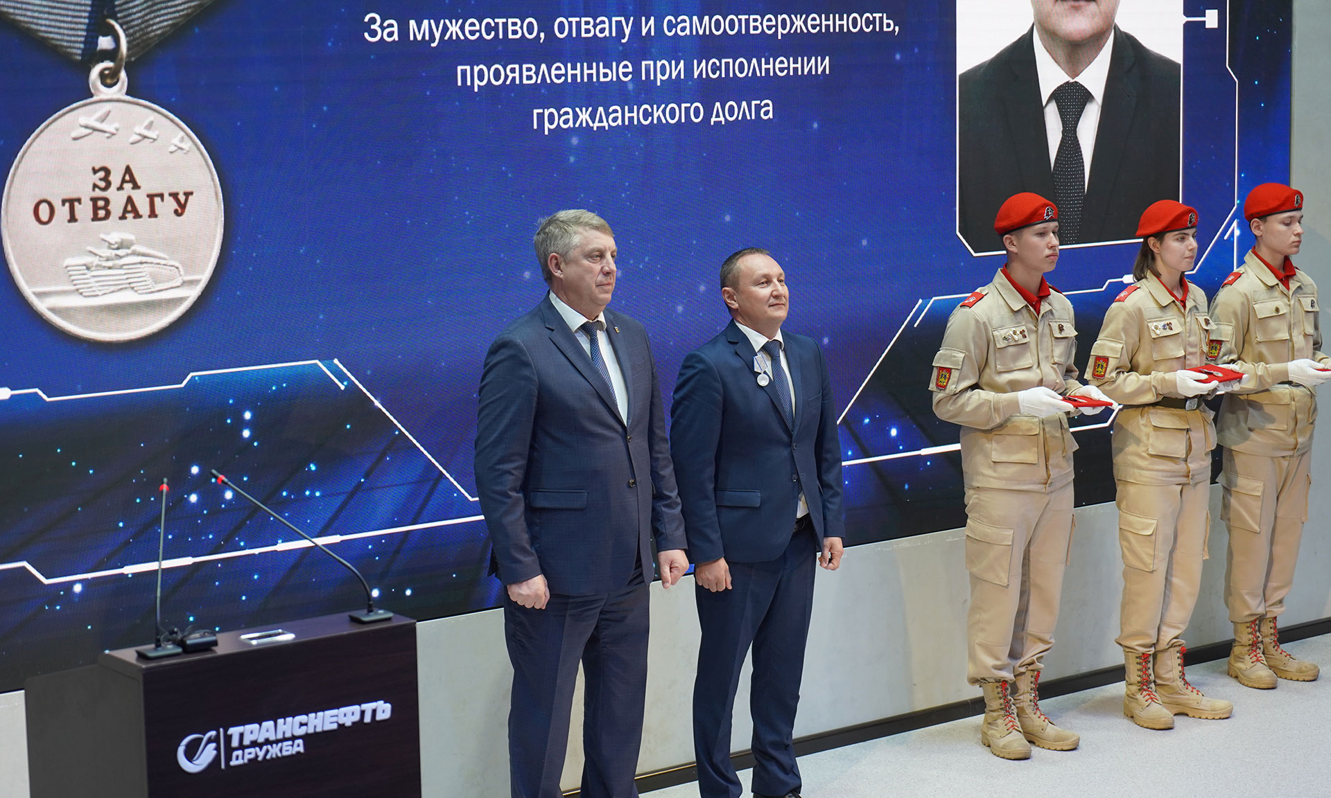 Указом Президента Российской Федерации Владимира Путина за мужество, отвагу и самоотверженность, проявленные при исполнении гражданского долга, добровольцы — сотрудники стратегического предприятия страны, АО «Транснефть — Дружба» — были награждены медалью «За отвагу».