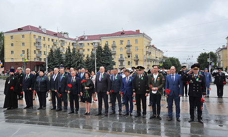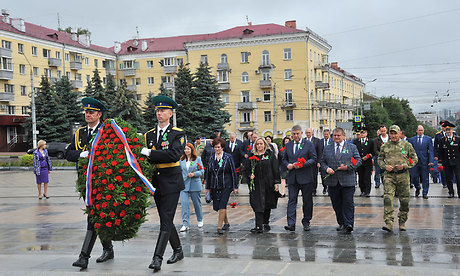 Память Героев почтили Губернатор Александр Богомаз, заместитель председателя Брянской областной Думы Виталий Беляй, Герои России Александр Постоялко и Андрей Фроленков, матери погибших защитников Отечества: член Общественной палаты Российской Федерации, член Брянского регионального отделения Общероссийской общественной организации семей погибших защитников Отечества Лидия Ермакова, председатель постоянного комитета Брянской областной Думы по образованию, науке, культуре и СМИ Людмила Журавлева, председатель комитета Брянской областной Думы по законодательству и местному самоуправлению, председатель Совета ветеранов труда, Вооружённых сил и правоохранительных органов Брянской области Василий Попадайло, председатель Брянского регионального отделения «Комитет семей воинов Отечества» Марина Седнева, сенатор Российской Федерации Галина Солодун, председатель Брянского областного суда Александр Курганов, председатель Арбитражного суда Брянской области Евгений Егоров, начальник управления ФСБ России по Брянской области Сергей Воронин, начальник управления МВД России по Брянской области Владислав Толкунов, начальник главного управления МЧС России по Брянской области Вадим Уваркин, начальник управления Федеральной службы войск национальной гвардии Российской Федерации по Брянской области Иван Ванчугов, руководитель следственного управления Следственного комитета Российской Федерации по Брянской области Максим Лукичев, заместитель начальника пограничного управления ФСБ России по Брянской области Леонид Гураль, начальник Центра специальной связи и информации федеральной службы охраны РФ в Брянской области Олег Бельский, начальник Брянской таможни Сергей Санакоев, руководитель управления ФНС России по Брянской области Андрей Маркелов, руководитель управления Федеральной службы судебных приставов по Брянской области — главный судебный пристав Брянской области Елена Бывшева, начальник отдела военного комиссариата Брянской области Яков Литовский, заместители Губернатора Юрий Филипенко, Галина Петушкова, Николай Лучкин, врио заместителя Губернатора Брянской области Александр Петроченко, глава города Брянска Марина Дбар, глава Брянской городской администрации Александр Макаров, заведующий отделом по взаимодействию с вооруженными силами и правоохранительными органами Брянской епархии иерей Михаил (Агешин), председатель Брянского регионального общественного движения военно-патриотических и поисковых организаций «Отечество» Александр Соболев, руководитель Брянского регионального отделения Общероссийской общественной организации «Ветераны боевых действий России» Вячеслав Губанов, представители органов власти, делегация Могилевской области, участники молодежного патриотического проекта «Дорогами Памяти и Славы», делегации муниципальных районов, муниципальных и городских округов Брянской области, руководители общественных организаций, студенты, школьники, члены военно-патриотических клубов Брянской области, курсанты военно-учебного центра БГИТУ, жители Брянска.