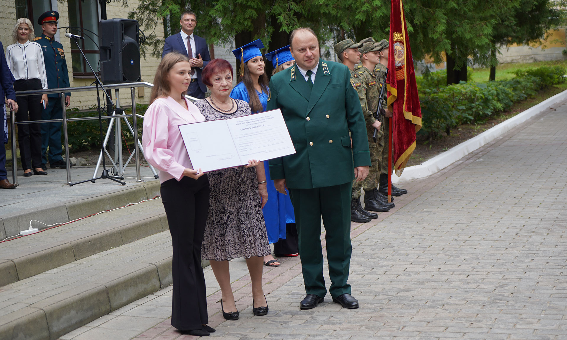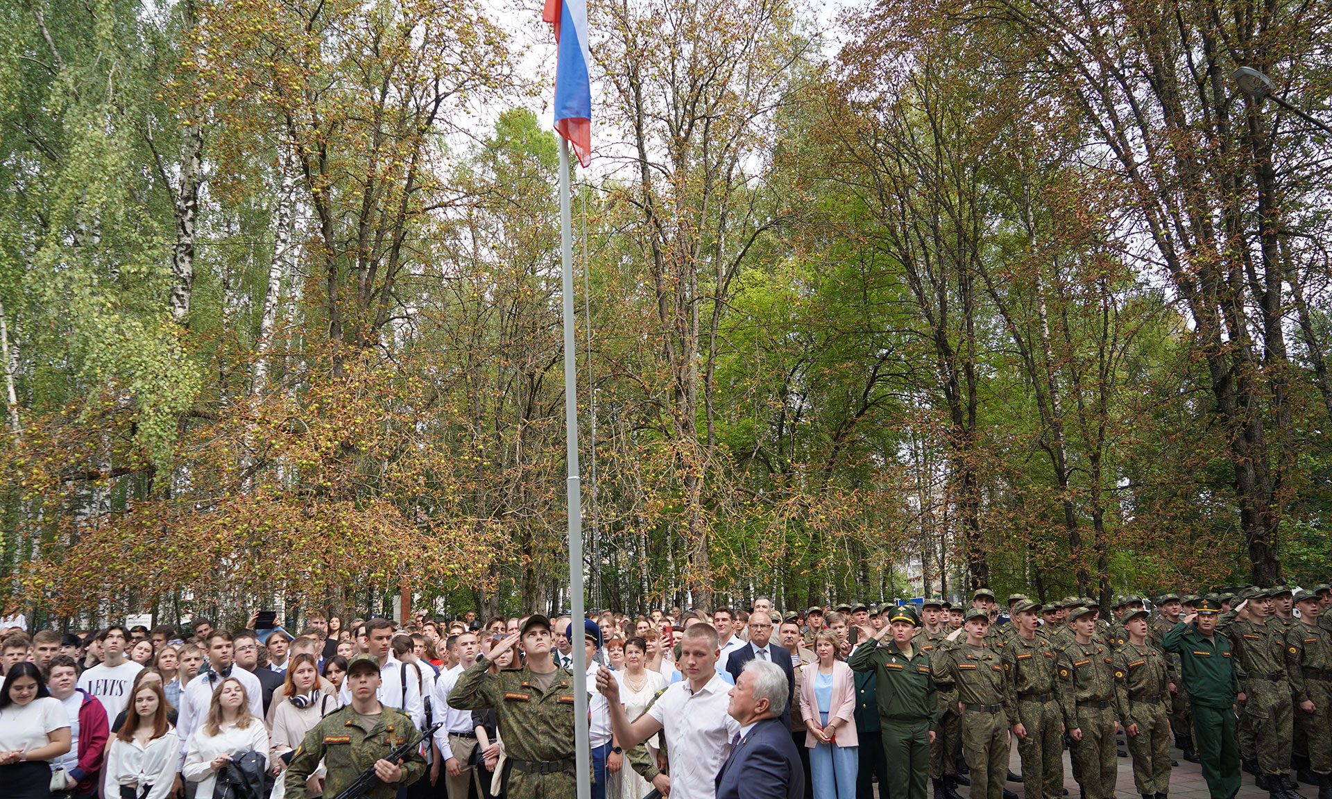 И сегодня, когда мы поднимали флаг, было приятно видеть торжественный марш студентов, которые учатся здесь в военном центре. Военная кафедра была и когда мы здесь учились. Одна из главных заслуг вашего ректора — то, что в единственном вузе нашего региона при поддержке Министерства обороны Российской Федерации вновь открыт и успешно действует Военный учебный центр. Университет готовит не только инженеров, но и будущих защитников нашей страны.