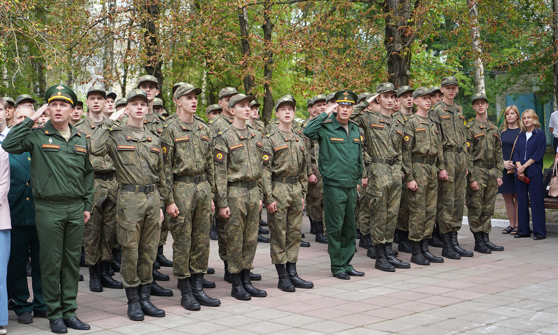 Торжественным маршем прошли студены, которые проходят в обучение в военном центре университета.
