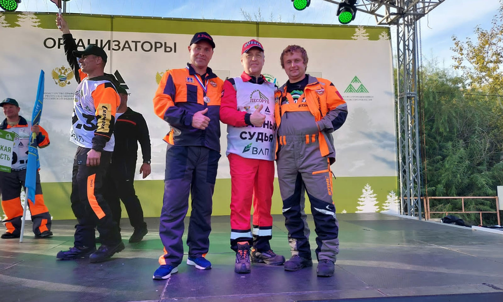 Андрей Азарин занял 5-е призовое место в дисциплине «Обрезка сучьев», набрав 416 очков, и по итогам соревнований с результатом 1469 очков стал 10-м в общем зачёте, а Сергей Козорез — 18-м (1111 очков).